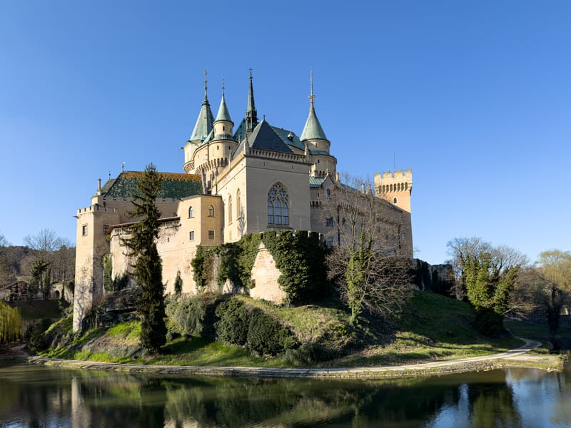 Constructia castelului Bojnice a inceput in secolul al XI-lea, dar castelul a fost complet distrus in secolul al XVII-lea si apoi reconstruit in stilul romantic. Castelul a fost renovat de mai multe ori intre secolele XIX si XX, fiind adaugate elemente noi precum turnul circular si o capela. Castelul Bojnice ofera tururi ghidate care includ vizitarea salilor de stat si a muzeelor din interiorul castelului. In apropierea castelului vei descoperi si o gradina zoologica, care este una dintre cele mai mari din Slovacia.