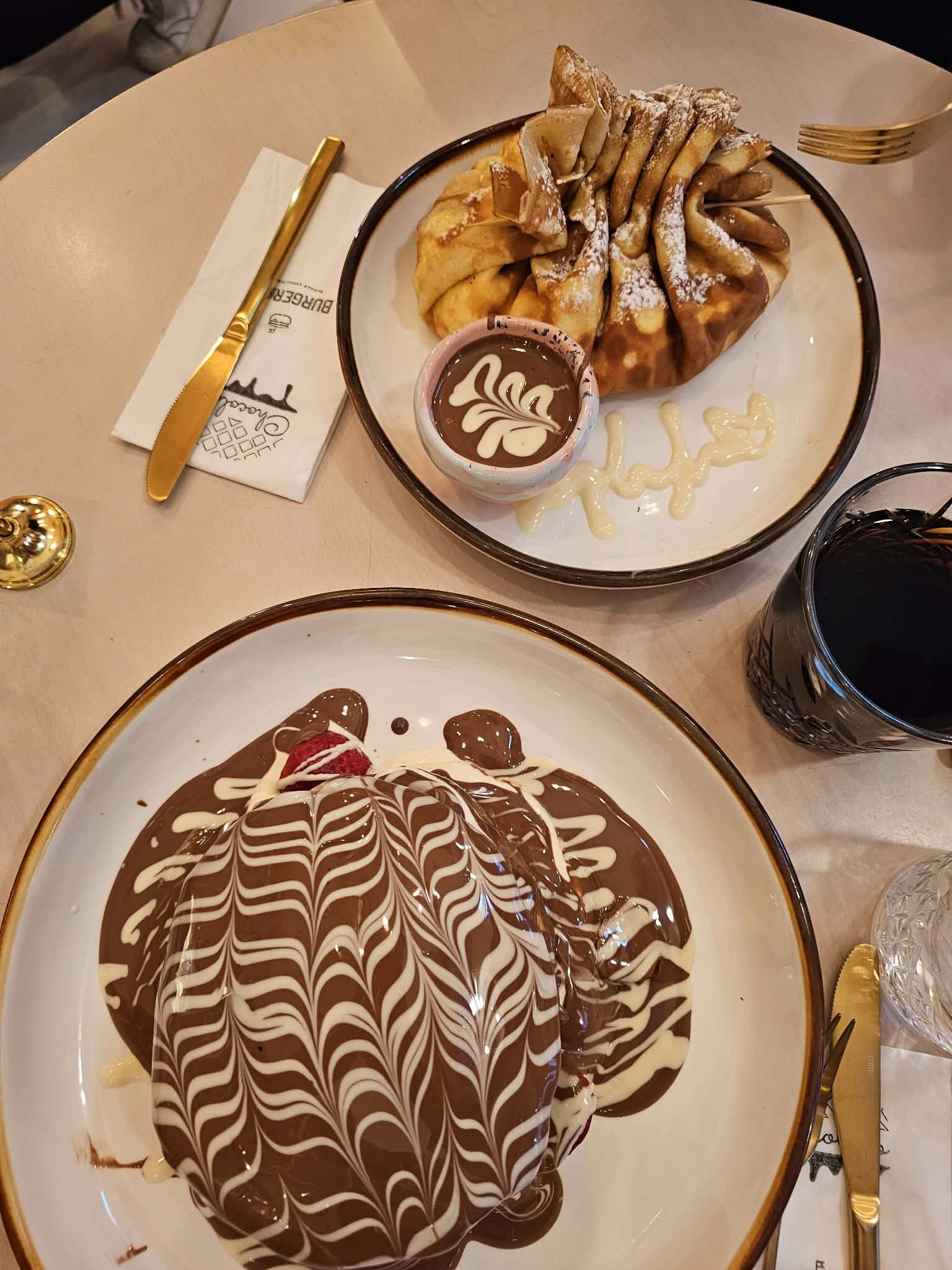 Chocoloco, prima mea propunere de azi, este locul ideal pentru a savura cele mai bune clătite din oraș. Cantitate, calitate și un loc de-a dreptul instagramabil. Ai de ales dintr-o varietate foarte mare de arome, combinații sau deserturi. Produsele sunt proaspete, preparate pe loc așa cum îți dorești tu. Cel mai neplăcut lucru poate fi faptul că îți va fi dificil să alegi un singur desert pe placul tău. Sau că s-a dus dieta ta la cât de mare e porția. O poți lua la pachet și savura mai târziu :) . Merită să renunți o zi la dietă pentru un astfel de desert.