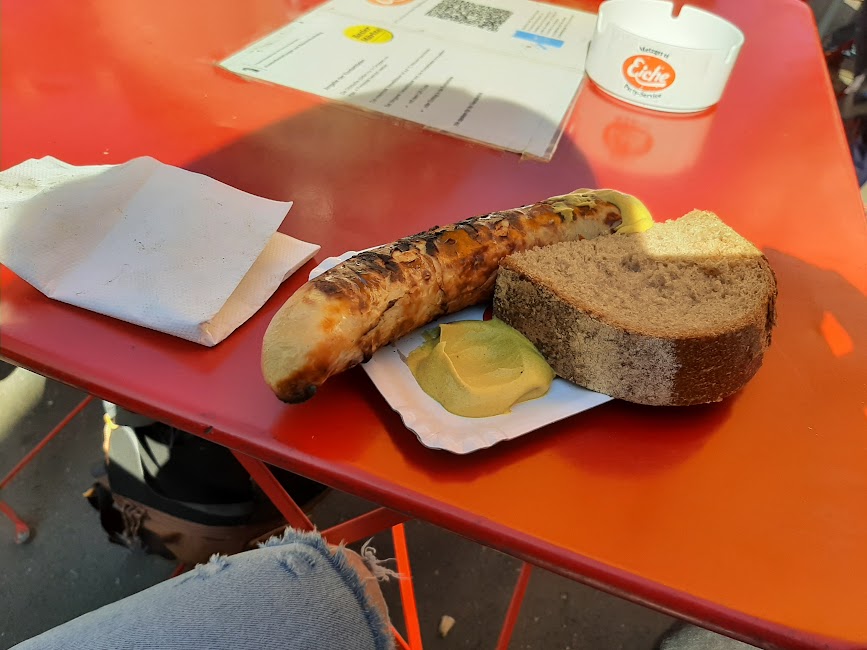In piata Marktplatz am aruncat o privire in curtea primariei si am savurat un delicios carnat traditional in targul de produse amenajat aici. Ne-am indreptat apoi spre podul Mittlere, am admirat orasul, am mai degustat cateva produse de patiserie specifice si ne-am indreptat spre gara pentru a lua trenul catre Colmar.