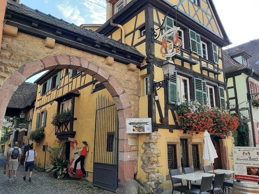 Astfel, la 08:30 ne-am prezentat la punctul de imbarcare din Colmar (20 min de cazare) si am pornit spre primul orasel din drumul vinului, Ribeauville, o alta bijuterie alsaciana. Aici ne-am plimbat pe aleea pietonala ce strabate oraselul, admirand cladirile vechi si dealurile nesfarsite de vita de vie. Conform programului excursiei, am poposit la o “boulangerie”, unde am savurat un delicios croissant si o cafea adevarata. Locatia este tipic frantuzeasca, in stil medieval si comercializeaza o multitudine de produse de patiserie, diverse sortimente de paine si traditionalii covrigi “brezel”.