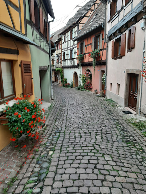 Colmar este un orasel superb, cu case tipic alsaciene, cu ferestrele pline de flori multicolore, cu numeroase canale, pe care se pot face plimbari cu barca (noi nu am reusit), cu stradute pietruite pline de farmec, cu numeroase terase. Un oras romantic, desprins din povesti.