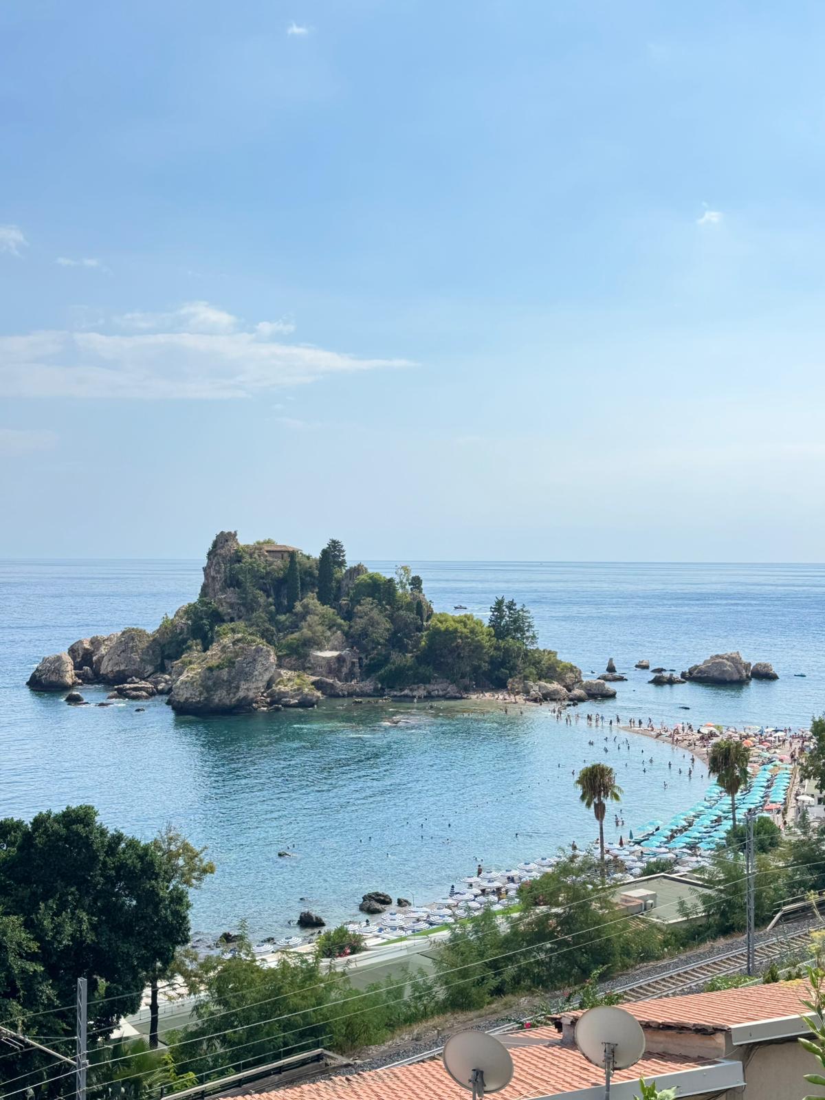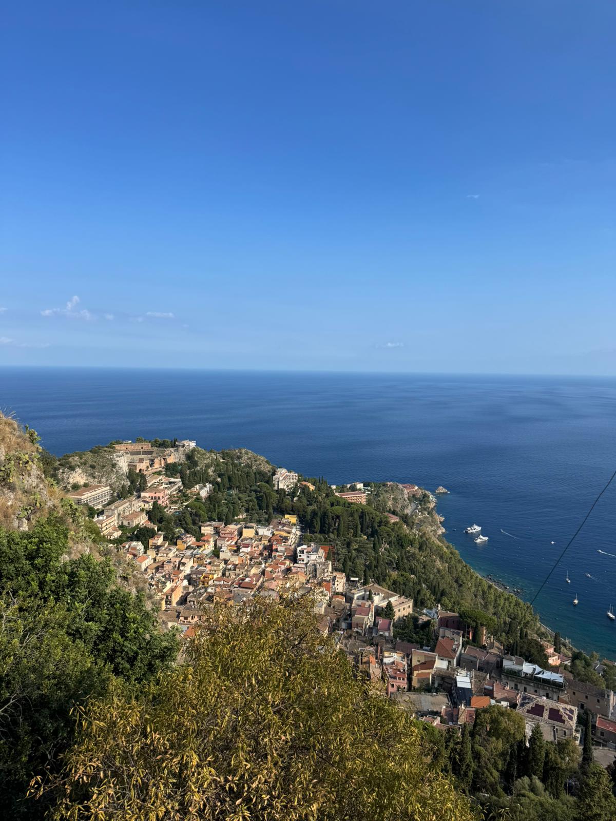 După ce am făcut haz de necaz de oboseala noastră, am ajuns la destinație. Atunci ne-am dat seama că efortul nostru a merit din plin. Să vezi totul de la înălțime, căsuțele, marea, Isola Bella, chiar și Teatrul Antic, la care nu am intrat, dar l-am văzut gratis de sus.