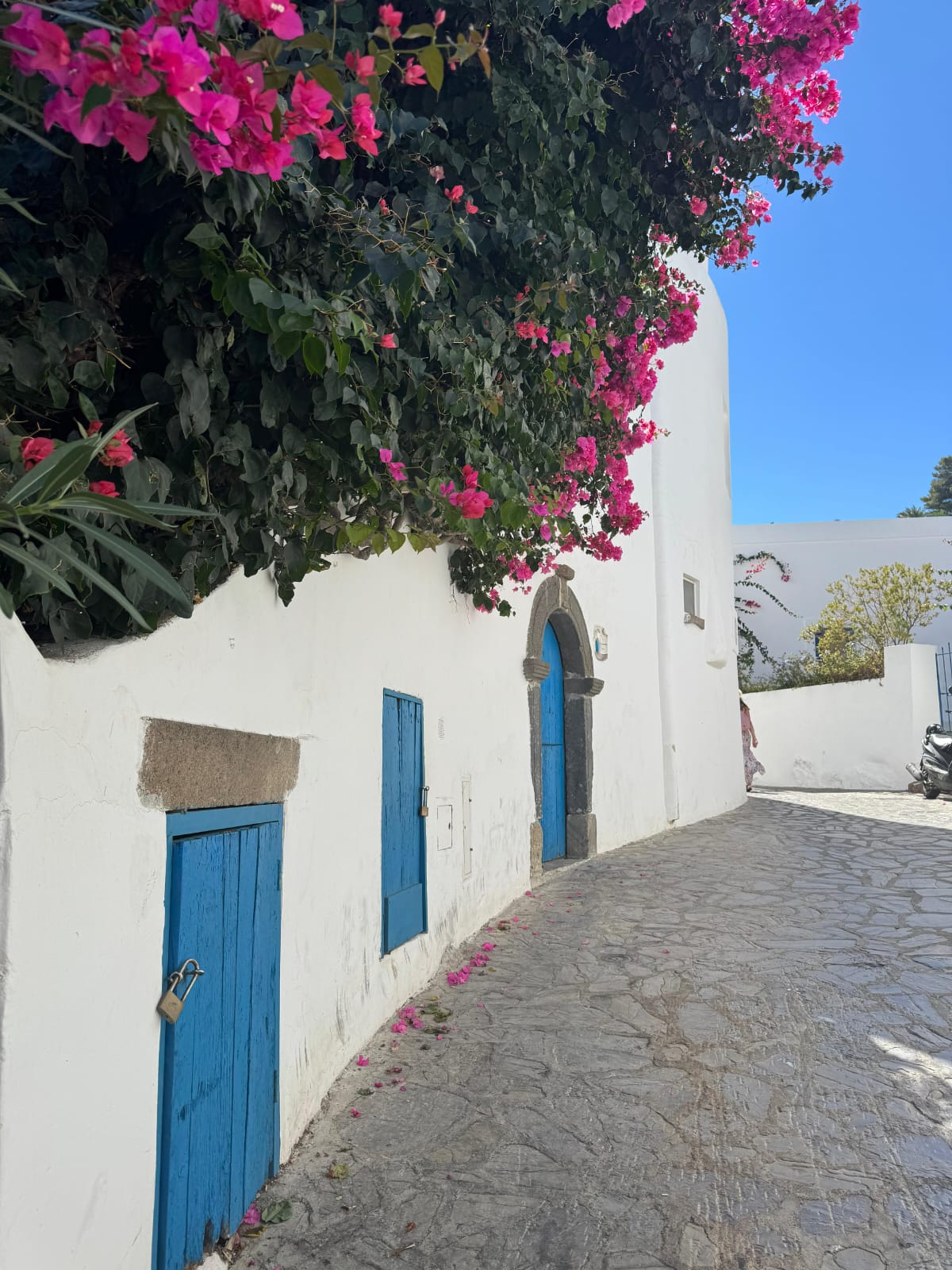 Aici ne-am întrebat dacă în așa scurt timp se ajunge în Grecia. Asta pentru că insula ne-a făcut să ne simțim că ne-am teleportat din Italia în Grecia. Căsuțe viu colorate în stil grecesc, cu flori roz și arhitectură grecească. Influența grecească a rămas după colonizare.