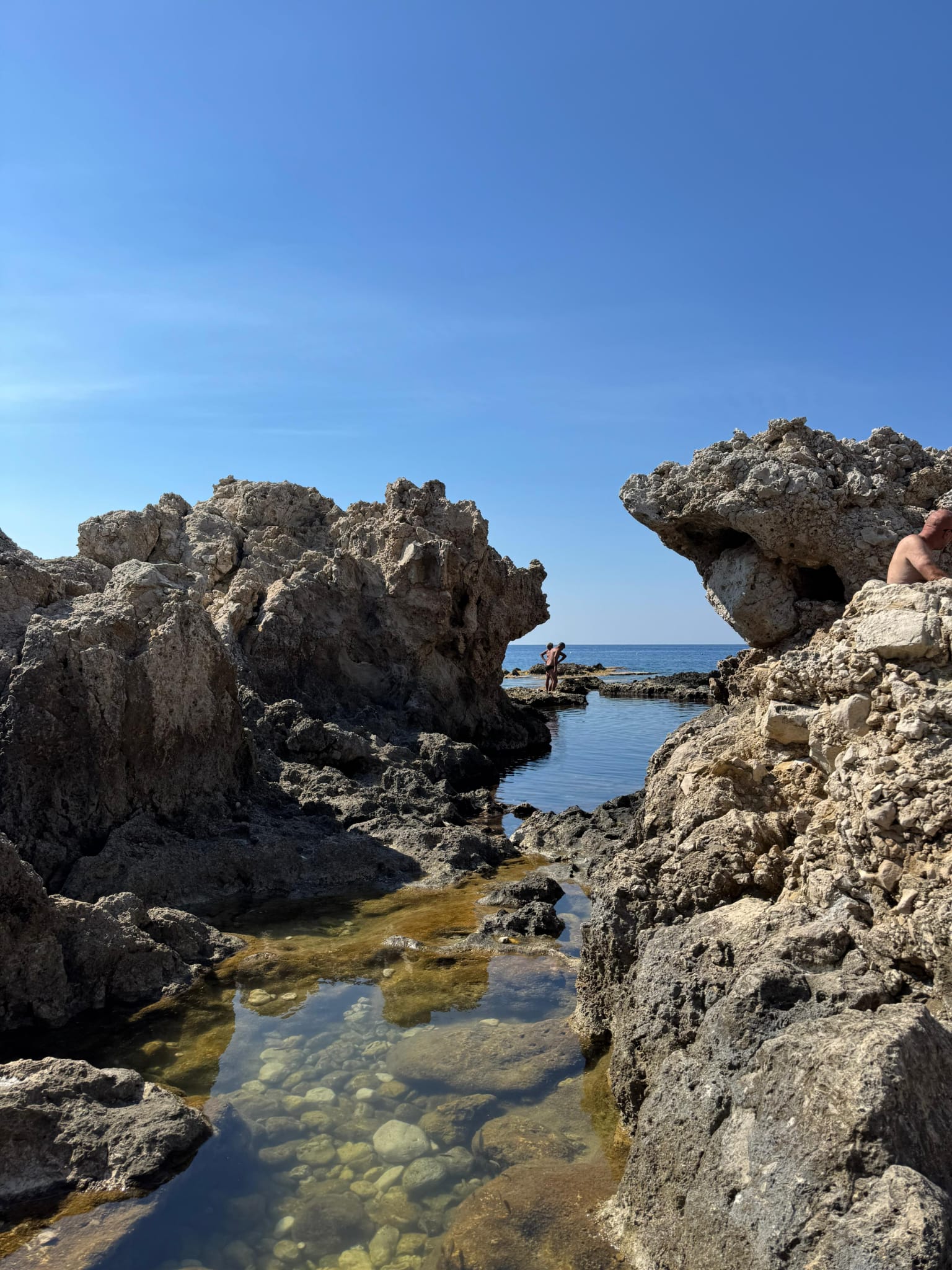 Apoi am intrat în apă. Am crezut că în Grecia am văzut cea mai limpede apă, dar m-am înșelat. Vedeai peștișorii care fugeau de picioarele tale. Efectiv eram în apă într-un golfuleț, între stânci.