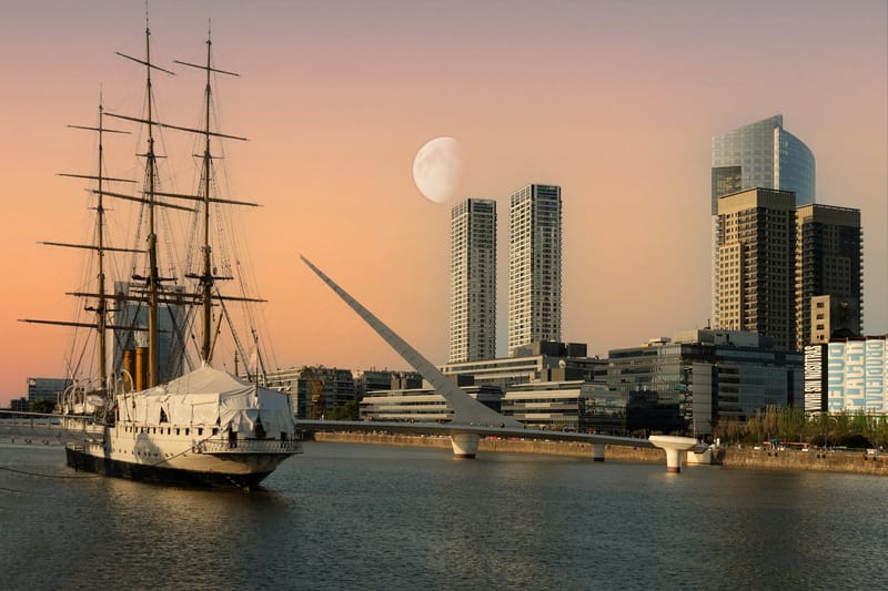 Mergând de-a lungul râului, ajungi în Puerto Madero, o zonă modernă, recent revitalizată, care contrastează puternic cu restul orașului. Podul Puente de la Mujer și turnurile din sticlă sunt simboluri ale acestei zone, care este ideală pentru o plimbare relaxantă pe faleză sau o cină în unul dintre restaurantele de lux.