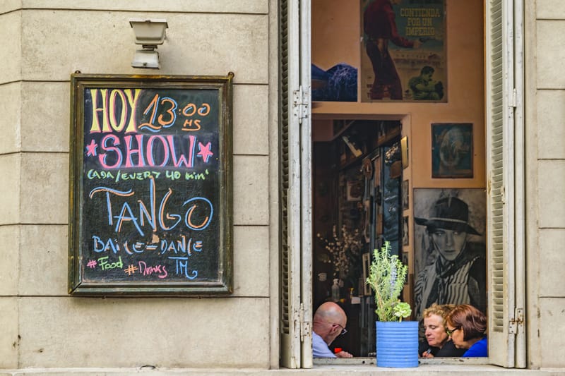 Pentru cei care nu sunt de origine argentiniană, tangoul înseamnă imagini cu dansatori firavi în decoruri sofisticate. Nu e greșit în totalitate, dar e totuși un stereotip. Deși recunosc originile din clasa de jos a societății pe care le are tangoul, spectacolele din Monserrat, San Telmo și Barracas sunt de obicei o versiune mai periată a muzicii și dansului care au izvorât din bordelurile și sălile de dans din arrabales (mahalalele) cu reputație proastă.