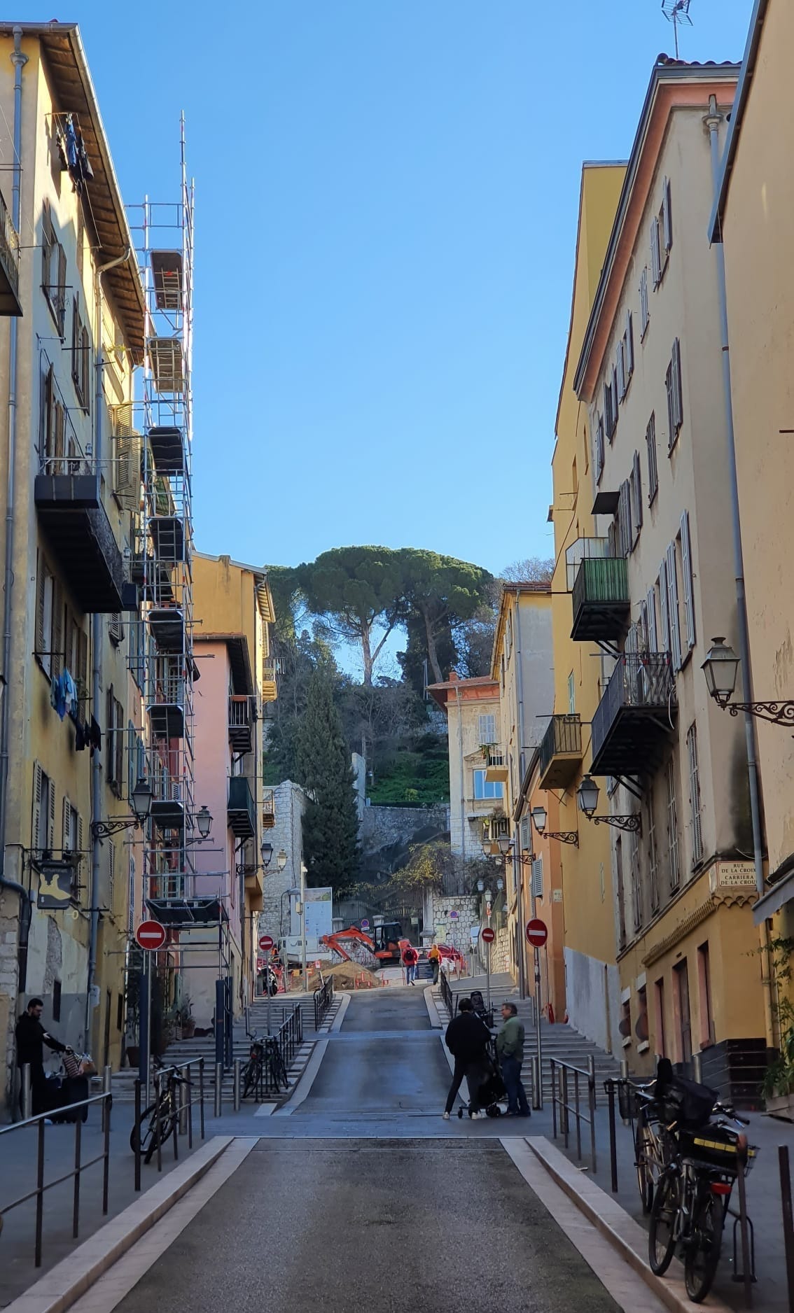 Ca să ajungi până în vârful Dealului Castelului, trebuie să urci pe scara de lângă Promenade des Anglais.
