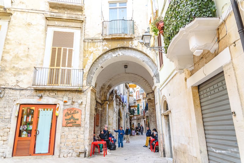 Cunoscut ca si Bari Vecchia de catre localnici, zona veche a orasului este cuprinsa intr-o mica peninsula ce poate fi explorata pe jos in cateva ore. Intre bulevard Vittorio Emanuele, portul vechi si portul comercial, exista un labirint de strazi si alei pline de cladiri istorice ce dateaza din epoci diferite ale orasului.