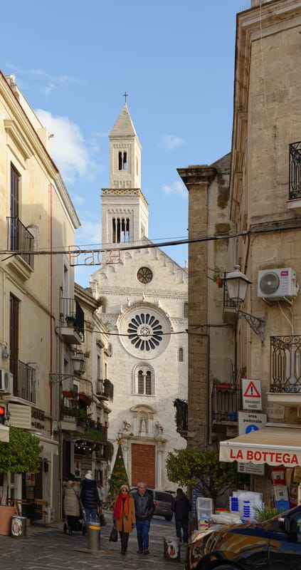 Primul obiectiv pe care trebuie sa il vizitezi este Basilica romanica Sf. Nicolae, construita in secolul XI cu mormantul sfantului ce a fost adus aici in 1087, cu o arhitectura plina de detalii elegante aceasta basilica iti va oferi o incursiune in istoria orasului. In aceeasi piata, poti admira si Palazzo del Catapano, Biserica Sf. Grigore sau Muzeul Nicolaiano.