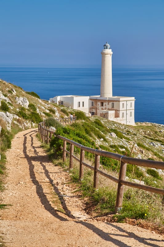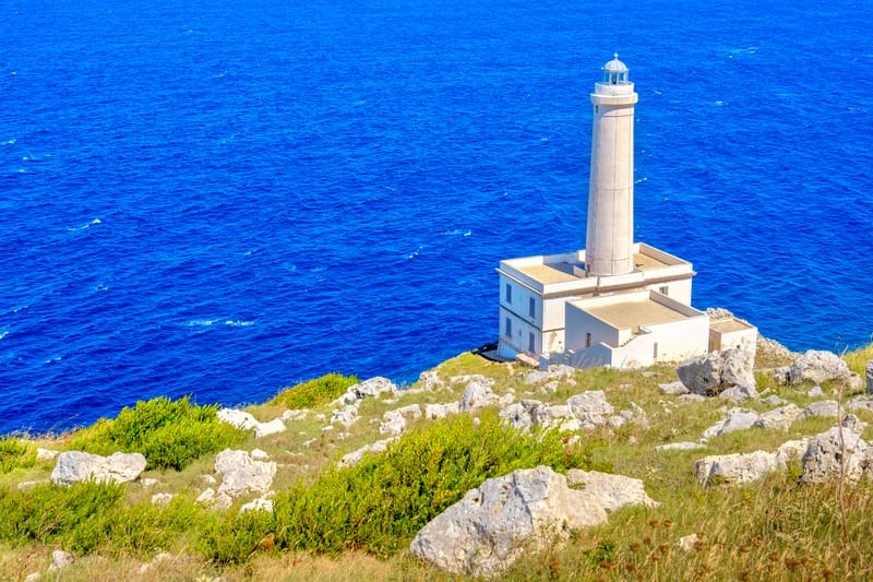 Faro della Palascia ce delimiteaza Marea Adriatica de Marea Ionica, opreste-te aici pentru a admira o priveliste de exceptie asupra apelor azur.