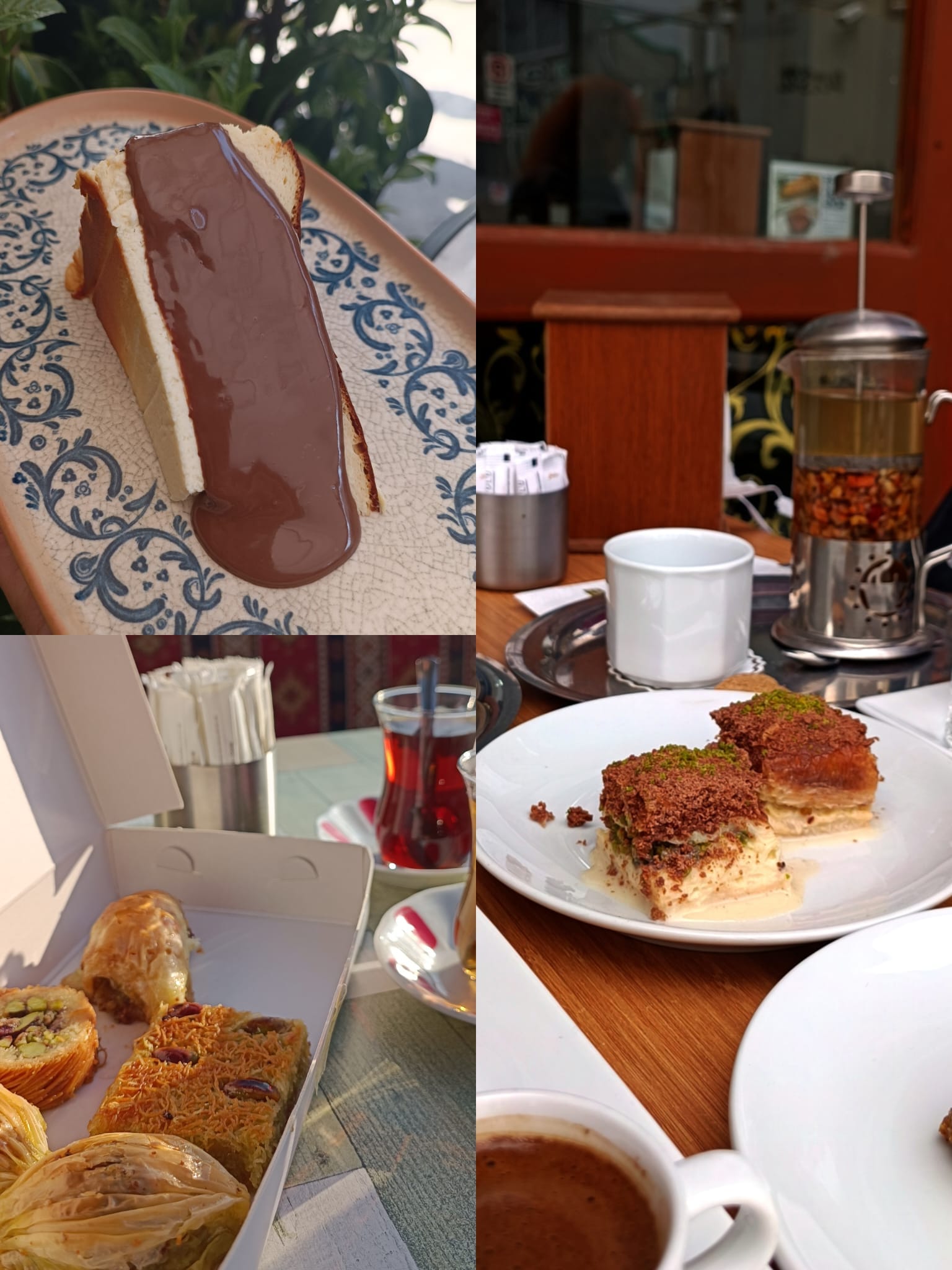 În primul rând, baclavaua și toate celelalte prăjituri cu foietaj pline de sirop nu sunt atât de dulci pe cât ai crede sau ai mai gustat în altă parte. În al doilea rând, sortimentele de rahat turcesc sunt cu totul altceva. Se prezintă sub forma unor rulouri/rulade pline de cremă, cu diverse nuci și au un înveliș deosebit. Și, nu în ultimul rând, înghețata, care are un alt gust și o altă textură față de gelato din Italia sau înghețata din copilărie la vafă. Trebuie să încerci!