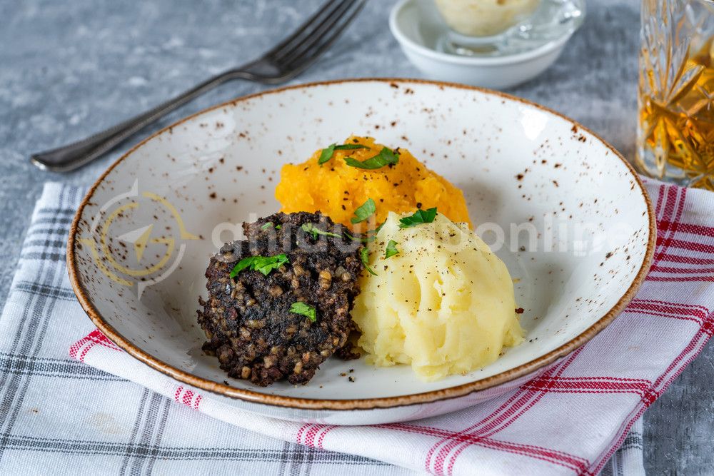 - Haggis neeps and tatties - o combinație tradițională de haggis, piure de cartofi și tăiței de napi. Este adesea servită ca fel principal la sărbătorile scotiene, cum ar fi Burns Night.