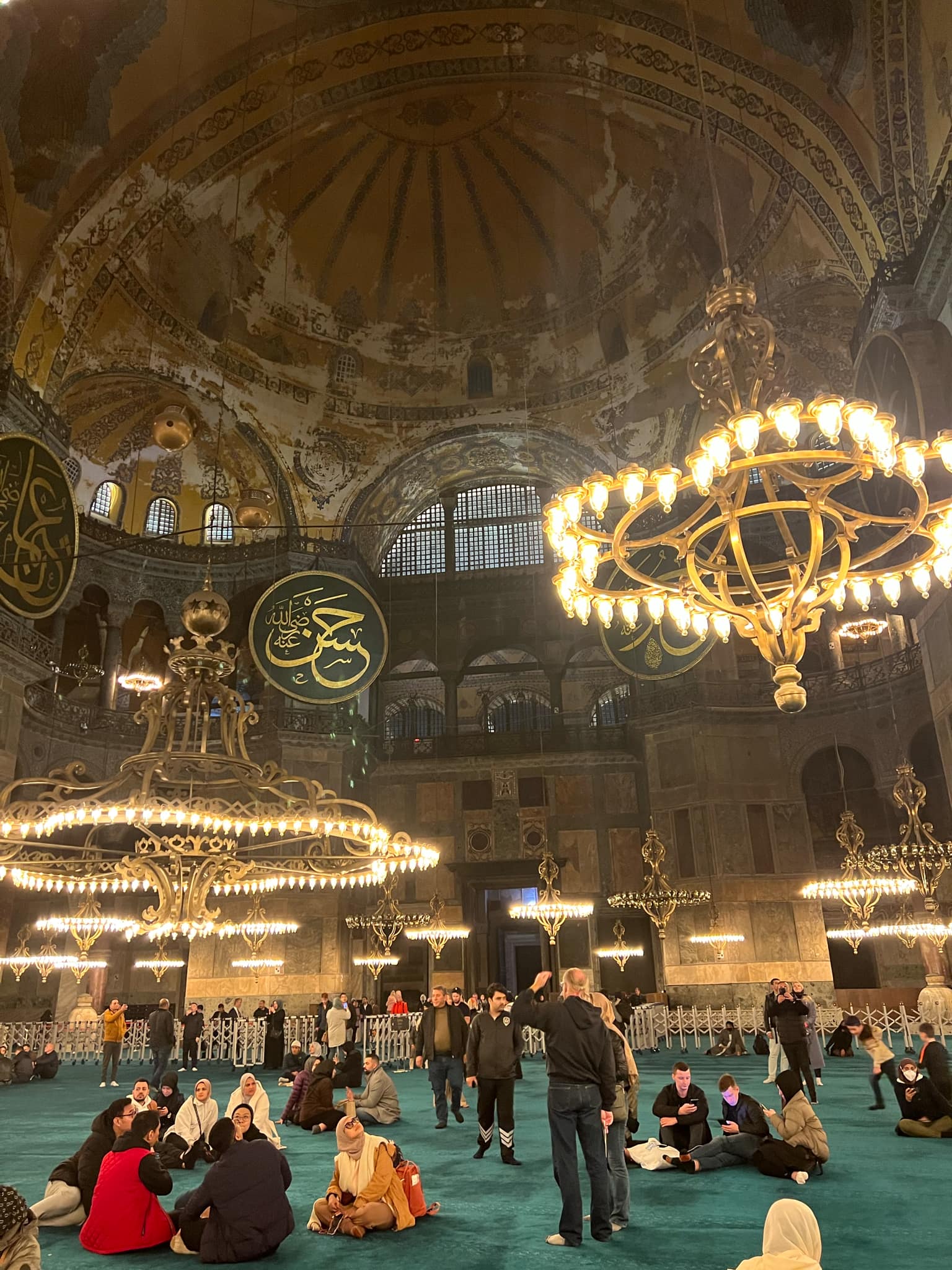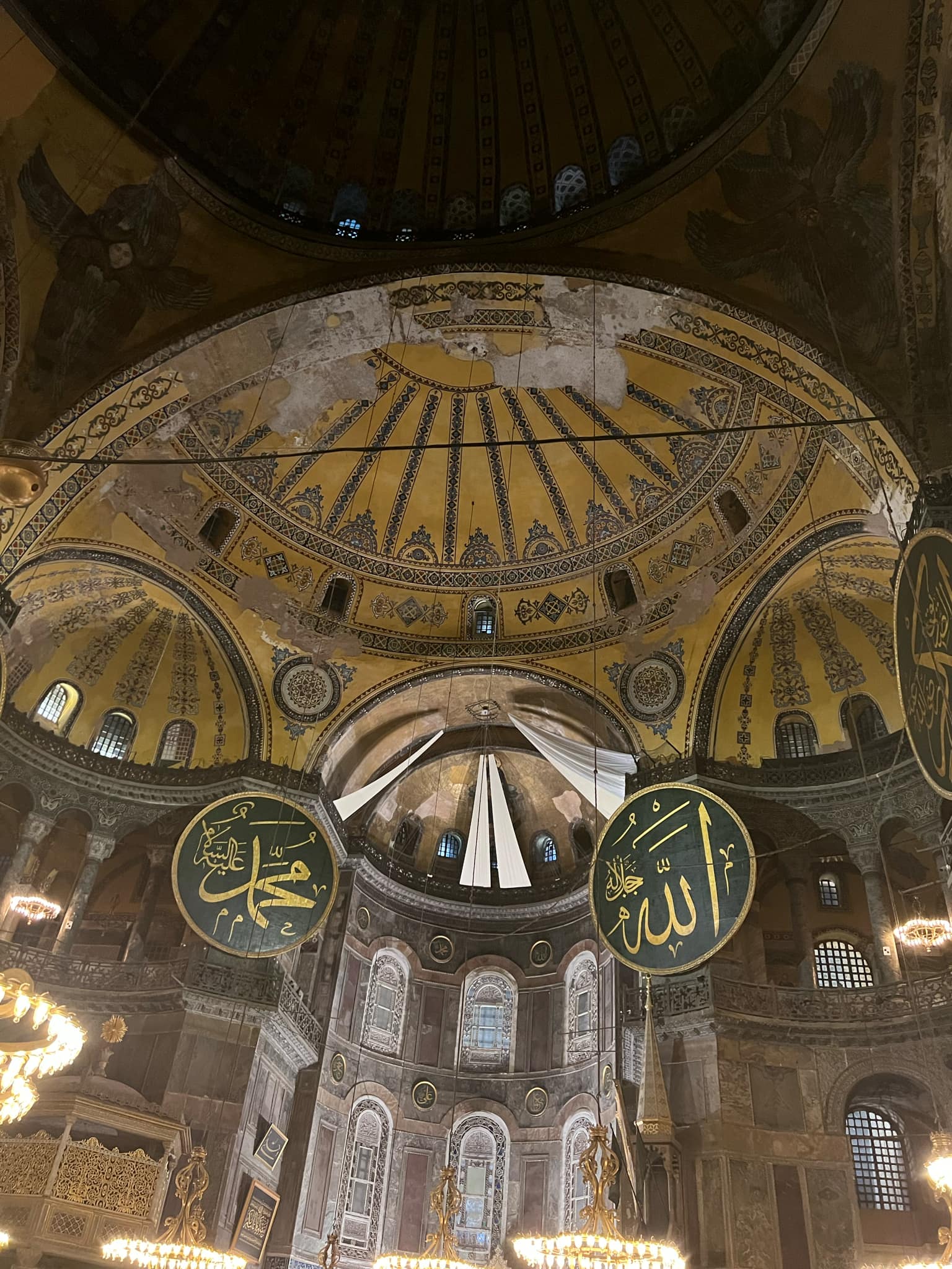 Moscheea Hagia Sofia este o poveste în continuă schimbare, o biserică transformată în moschee, apoi în muzeu, și din nou în moschee. În 2018 Muzeu, plăteai biletul de intrare și o vizitai, lucru pe care l-am facut și noi. A fost interesant să vezi urmele creștine păstrate prin icoanele ce le puteai observa în interiorul ei. Când am revenit în 2023, deja era considerată moschee, cu intrare liberă, pe același principiu ca și Moscheea Albastră. Icoanele creștine nu au fost distruse, dar erau acoperite cu cearșafuri albe. În prezent moscheea are deschisă pentru turiști doar partea de sus, și un muzeu aflat într-o clădire anexă. Intrarea este de 25 de euro. Dacă merită, aș zice că nu.