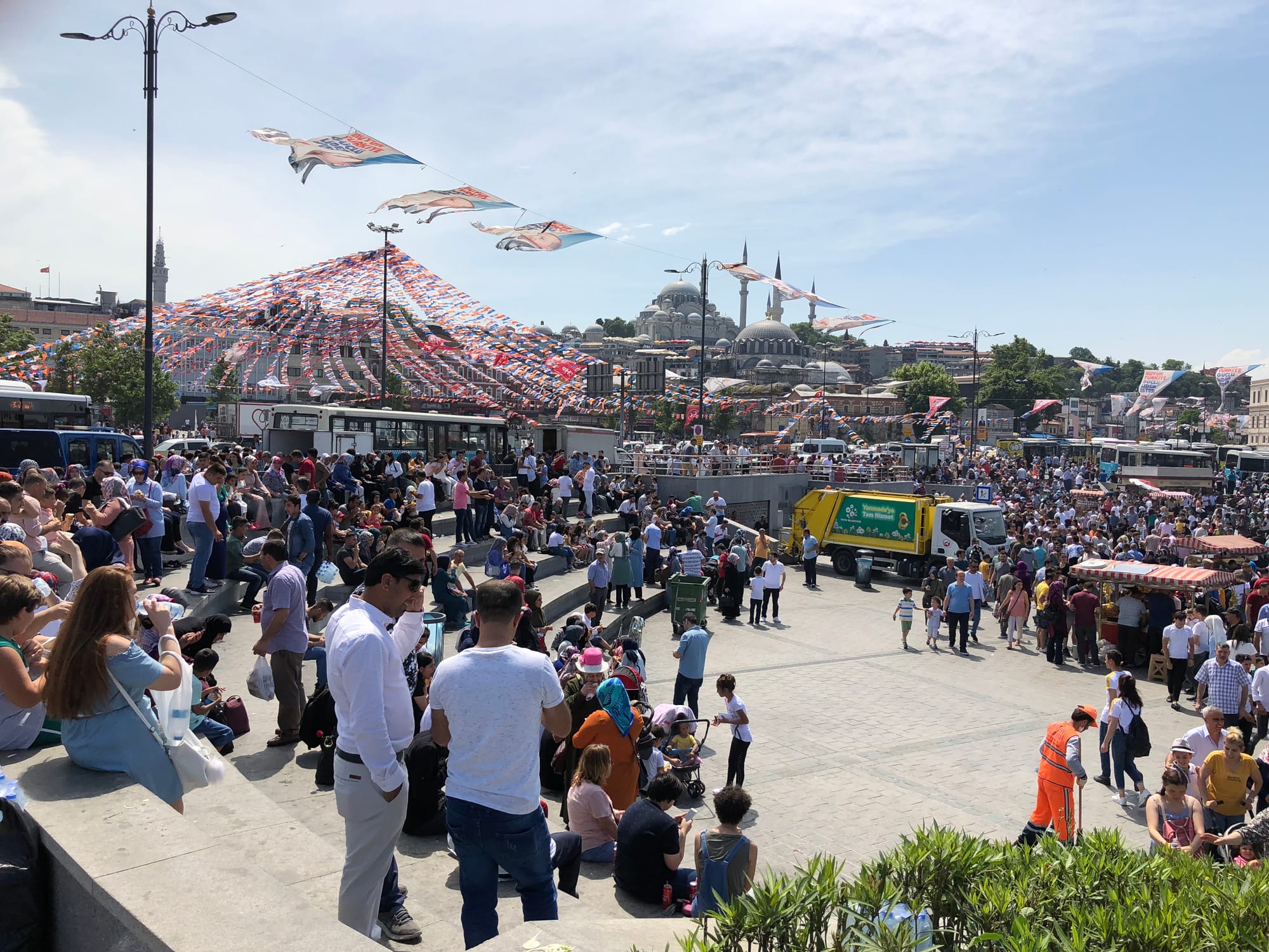 Aici poți observa cel mai bine viața și freamătul Istanbulului. Localnici, turiști, cu toții ies după amiaza în această zonă. Oamenii se plimbă, stau la micile restaurante cu mese din platic și servesc un sandwich cu pește proaspăt, savurează un pahar cu murături, degustă castane coapte, porumb sau alte deserturi.