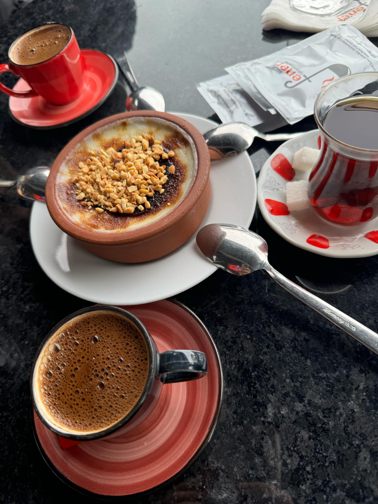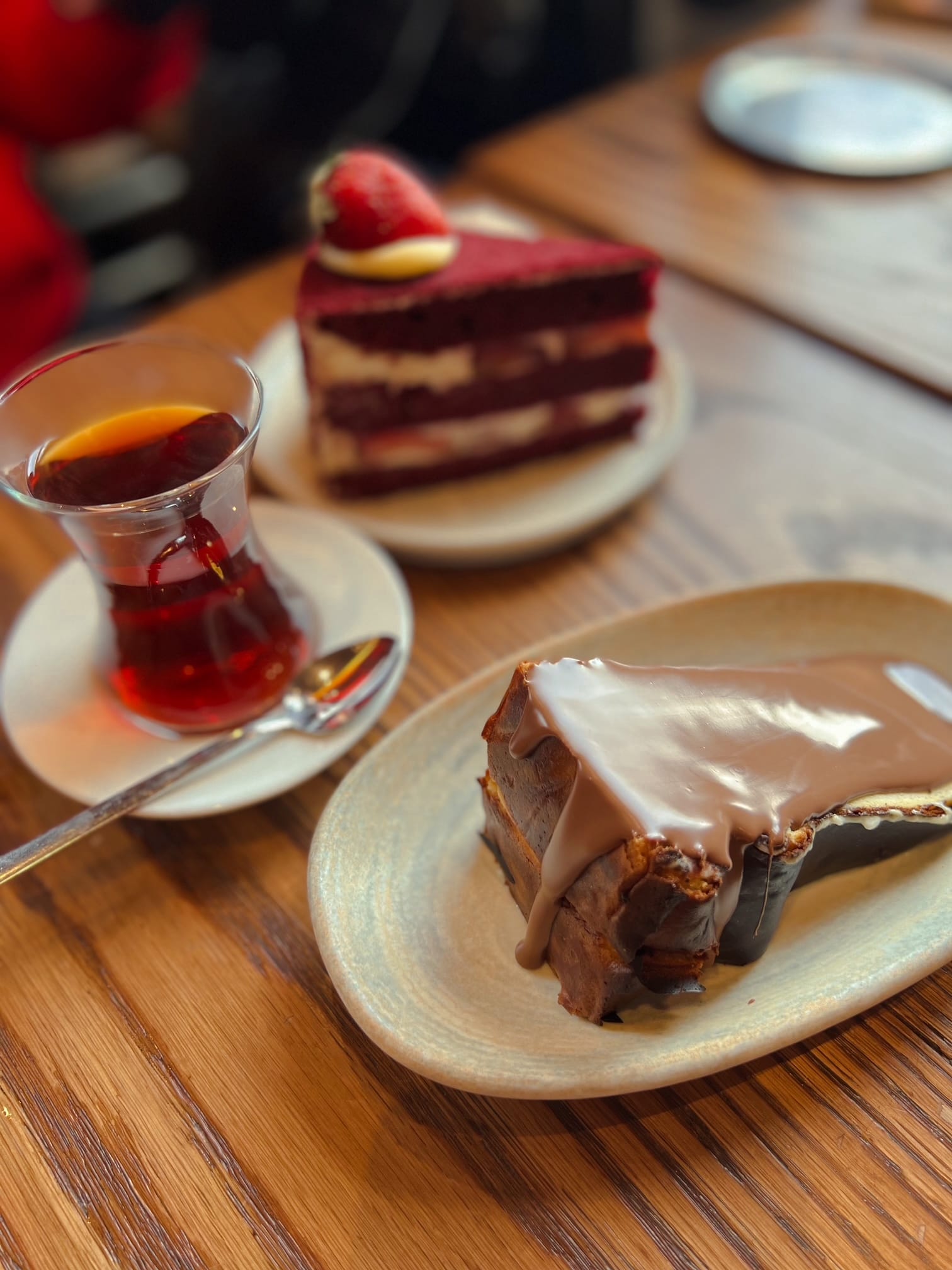 O altă cafenea drăguță, aflată în zona turnului Galata este Viyana Kahvesi, are deja două locații în zona turnului. Noi am încercat Cheesecake San Sebastian cu ciocolată, și Red Velvet, ambele fiind delicioase, doar că prețul e unul destul de european și de cele mai multe ori trebuie să aștepți pentru a primi o masă. Dacă ești atras de view, atunci ar putea fi o recomandare, dar altfel puteți încerca prăjituri, fursecuri cam din orice patiserie, pentru că nu veți da greș.