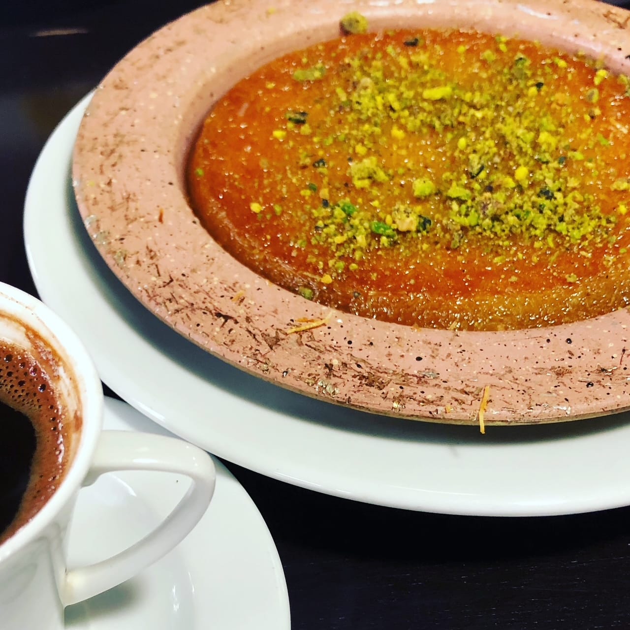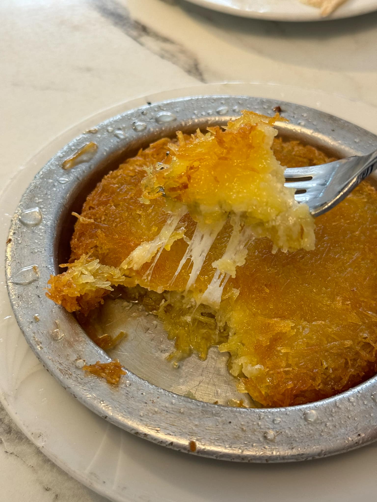 Tot din gama deserturi, v-aș recomanda să încercați și kunefe - un desert destul de popular, realizat din kataif, iar în interior are ceva brânză, peste care se toarnă un sirop destul de dulce, de aceea cred că o porție ajunge pentru două persoane.