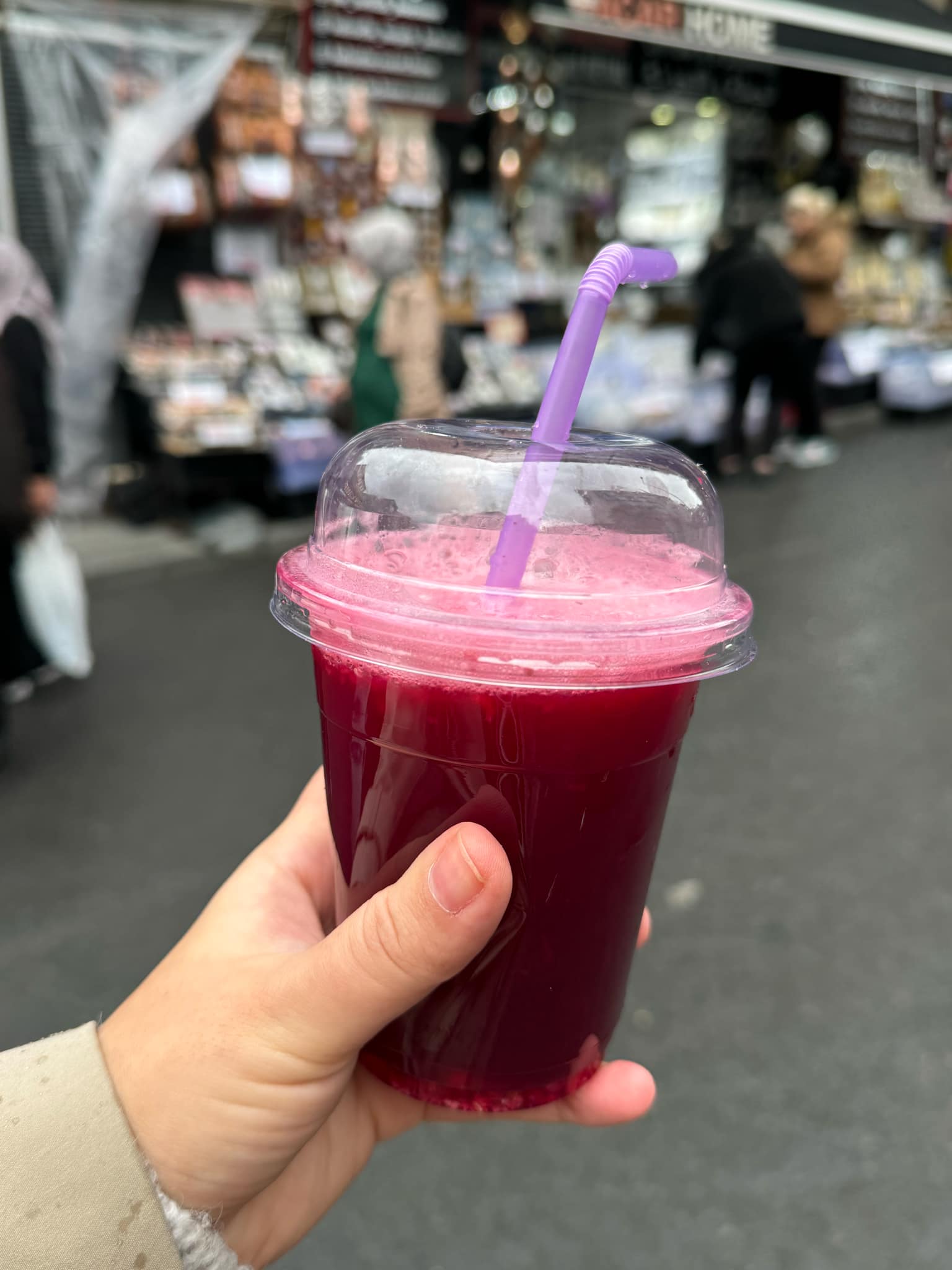 Avansând la ceea ce poți gusta pe stradă vă recomand să gustați sucurile naturale, portocale, rodie, sunt delicioase și făcute pe loc. Ca să nu plătiți un preț extrem de turistic este bine de știut că pe aleea spre Turnul Galata cum urci de la pod sunt prețuri normale, dar și în zona bazarului. Cred că cel mai scump l-am băut în zona Sultanahmet, deci ar fi de evitat.
