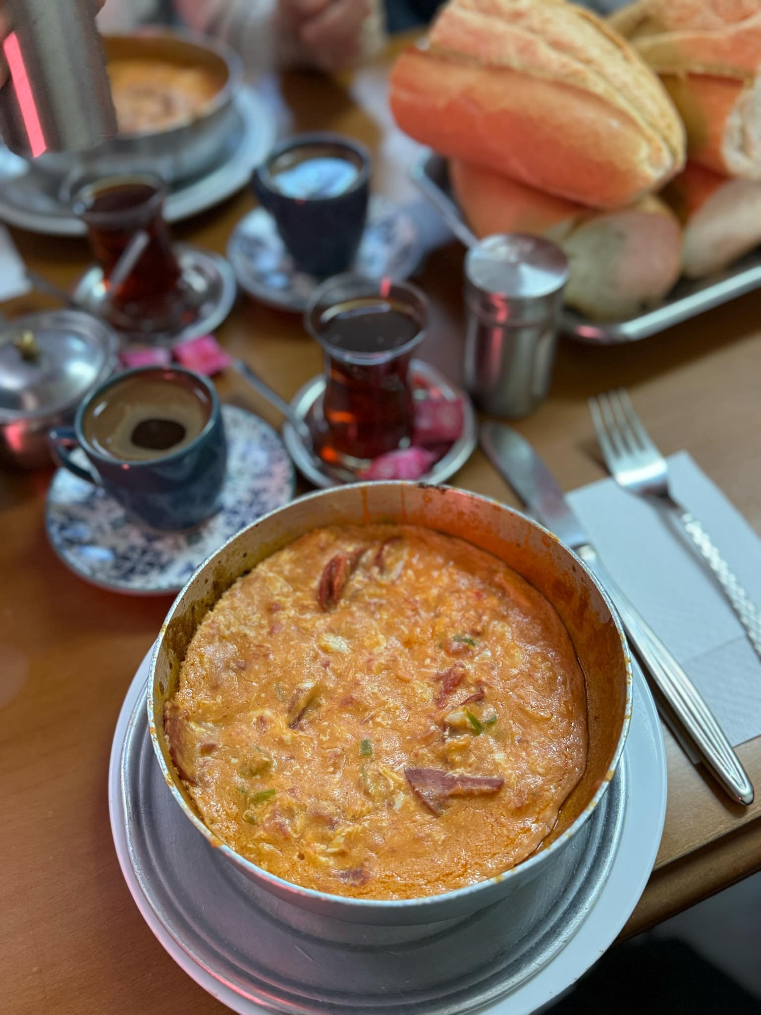 Un loc pe care îl recomand cu drag pentru micul dejun este Lades Menemen, situat pe o străduță laterală a bulevardului Istiklal Caddesi. Restaurantul este micuț, având câteva mese jos, si vreo 4-5 la etaj. Mâncarea este delicioasă, indiferent ce am ales. Preferatul nostru rămâne menemenul cu Sucuk, dar nu am dat greș nici când am optat pentru ouă cu brânză sau altceva din meniu. Este un loc bun unde să îți începi ziua ca un localnic. Mâncarea este servită în talgere de metal, totul fiind proaspăt pregătit. Poți opta și pentru un mic dejun în stil turcesc cu de toate, dar pentru noi erau prea multe pentru prima masă.