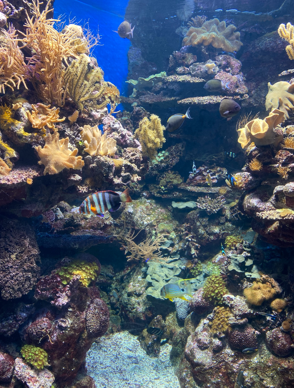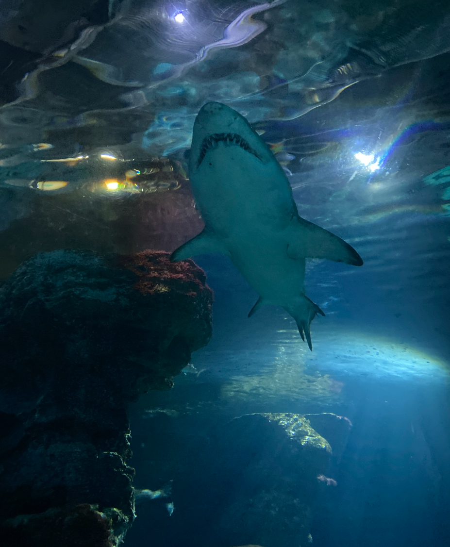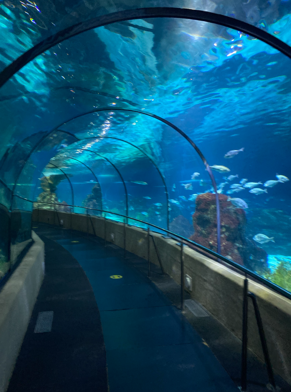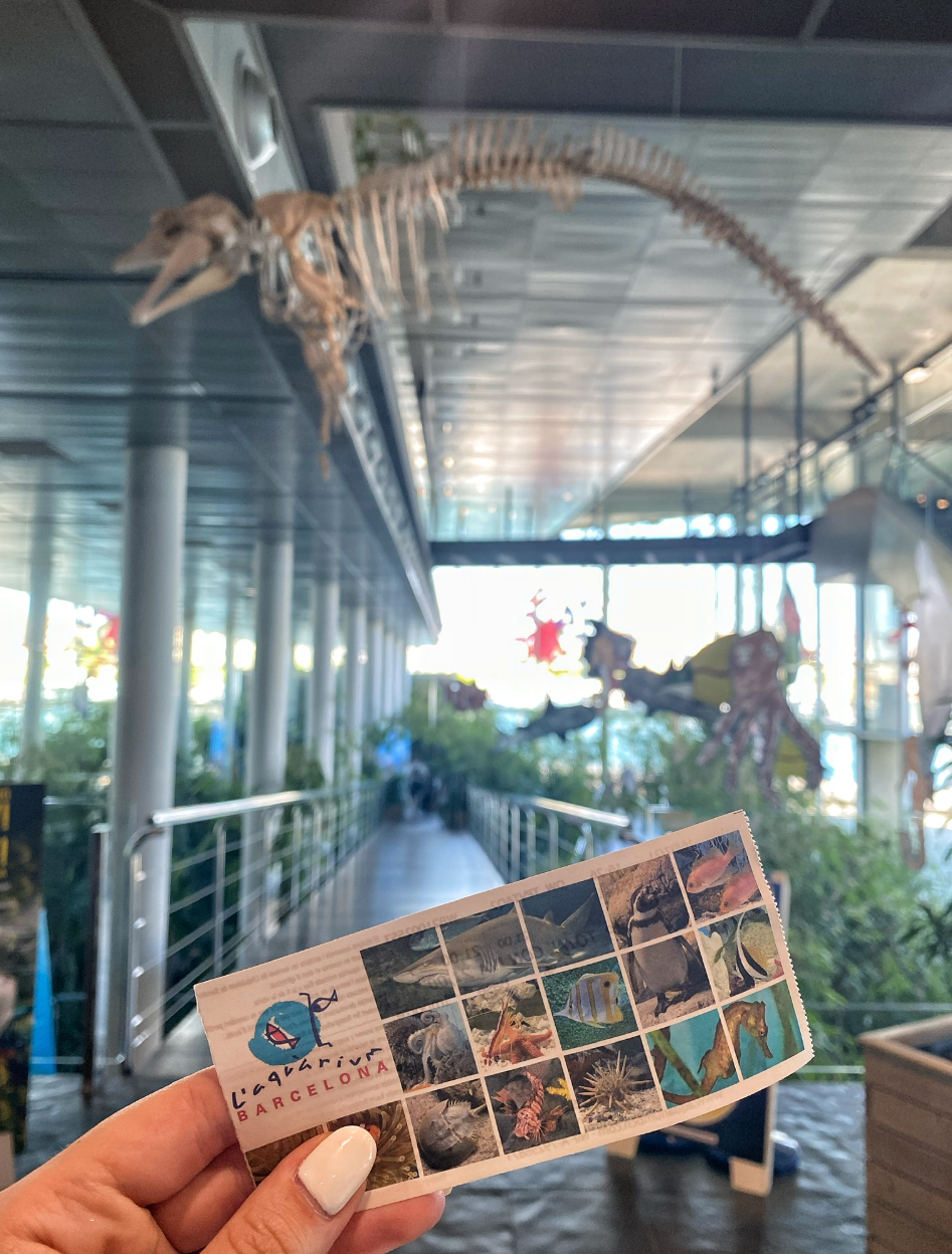 După plajă, am mers la Barcelona Aquarium, situat chiar lângă Maremagnum. Biletul a costat 29€ și l-am achiziționat direct de la intrare, iar vizita a durat aproximativ 1h15min. Totuși, dacă dorești să îl achiziționezi în avans, poți folosi GetYourGuide. Tunelul subacvatic este punctul de atracție principal, care m-a impresionat cel mai mult. Practic, m-am plimbat printr-un culoar transparent în timp ce rechinii și peștii colorați înotau deasupra mea. Și da, era aglomerat, am așteptat destul de mult pentru a face pozele cu tunelul liber.