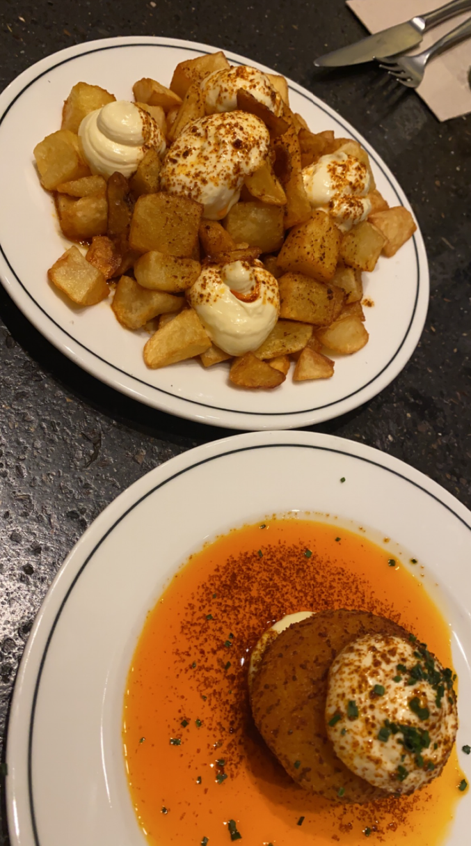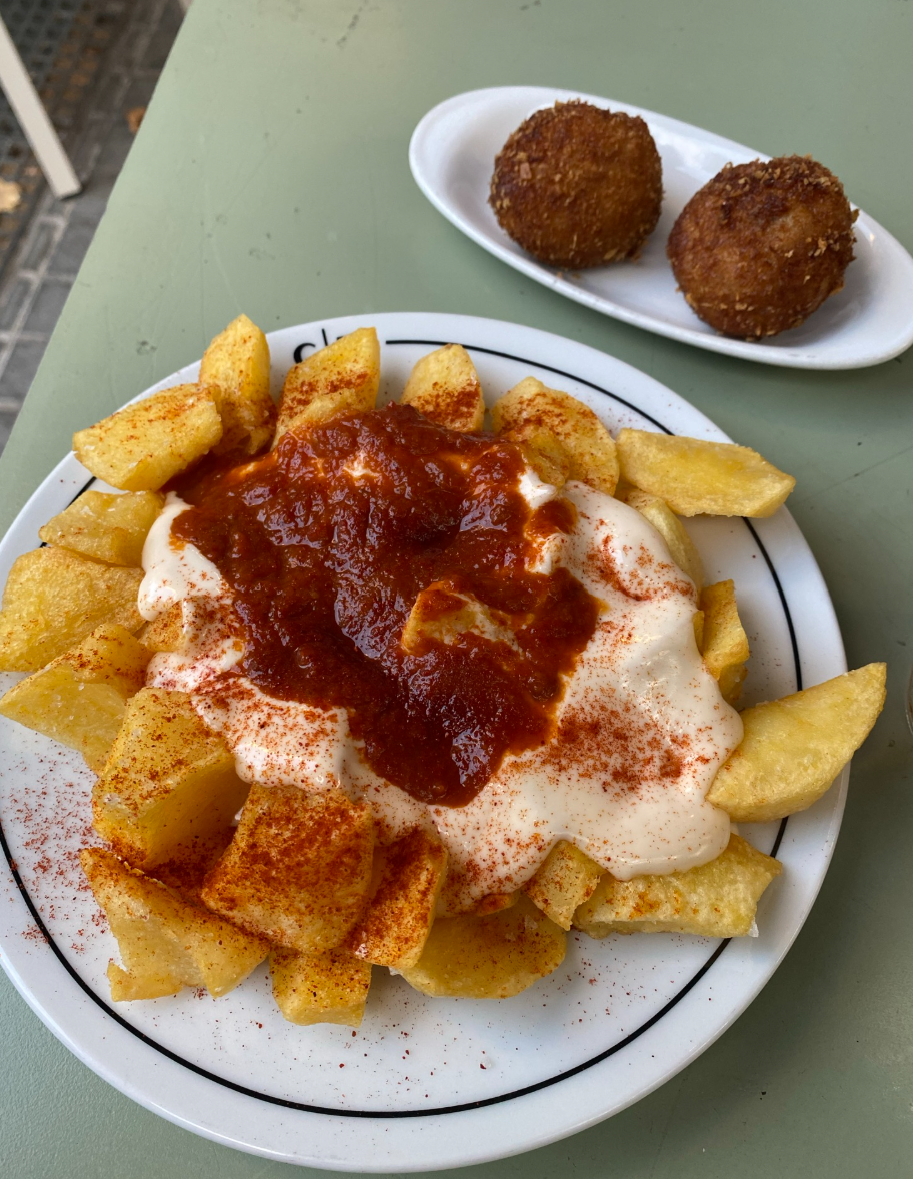 În Ciutat Vella am mâncat tapas tradiționale, dar și ceva dulce. Pentru a-ți lăsa o idee în ceea ce privește prețurile, o porție de patatas bravas costă între 5€ și 7€, croquetas costă aproximativ 2€ bucata, iar un desert costă între 3€ și 6€.