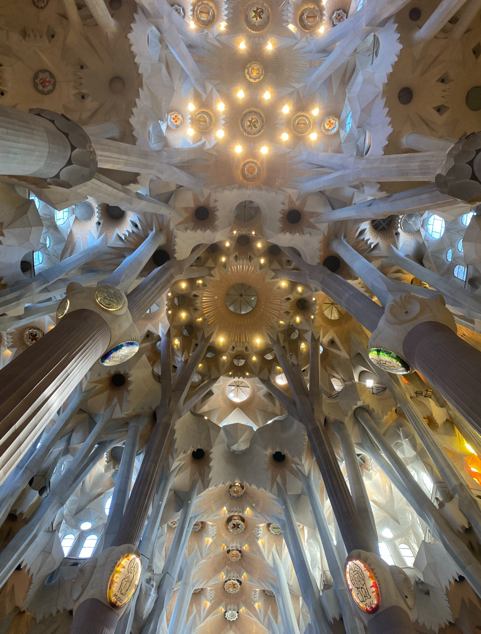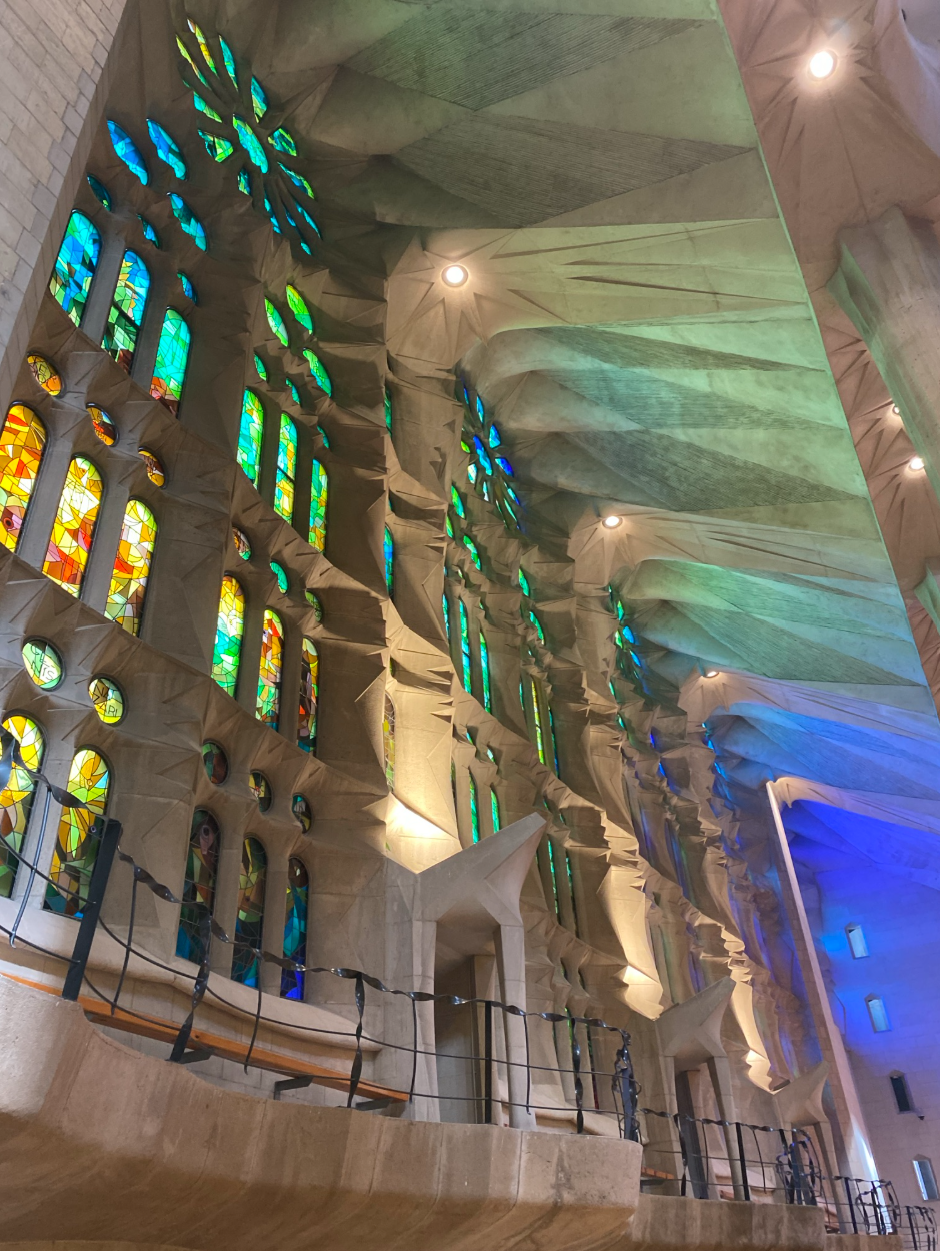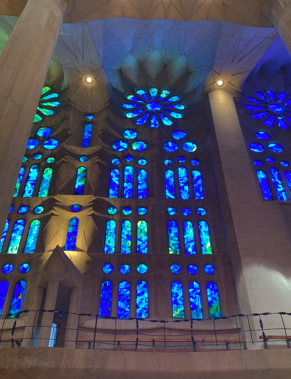 După plajă, prima oprire a fost la Basílica de la Sagrada Família, unde am revenit de data aceasta pentru a vizita interiorul. Acesta este absolut incredibil, vitraliile colorate creează un joc superb de lumini, iar coloanele uriașe sunt impresionante. A meritat pe deplin așteptarea, nu am fost dezamăgită. Biletul standard a costat 26€ și l-am achiziționat în avans de pe GetYourGuide. Dacă vrei să ai acces și în turnuri, prețul biletului se ridică la 36€.