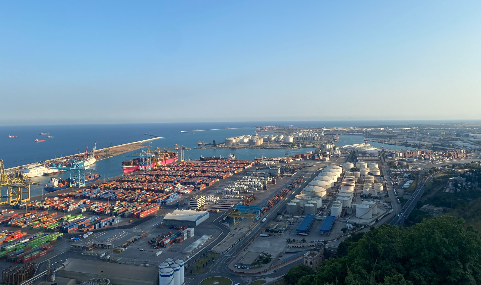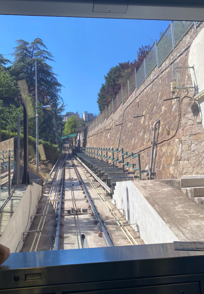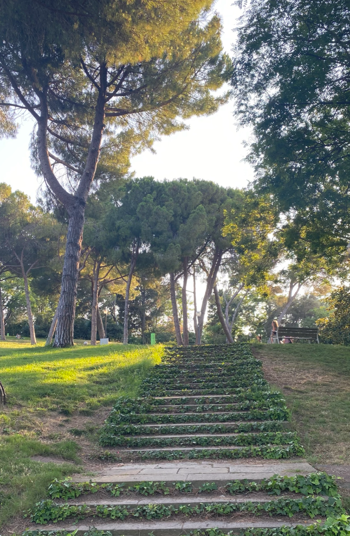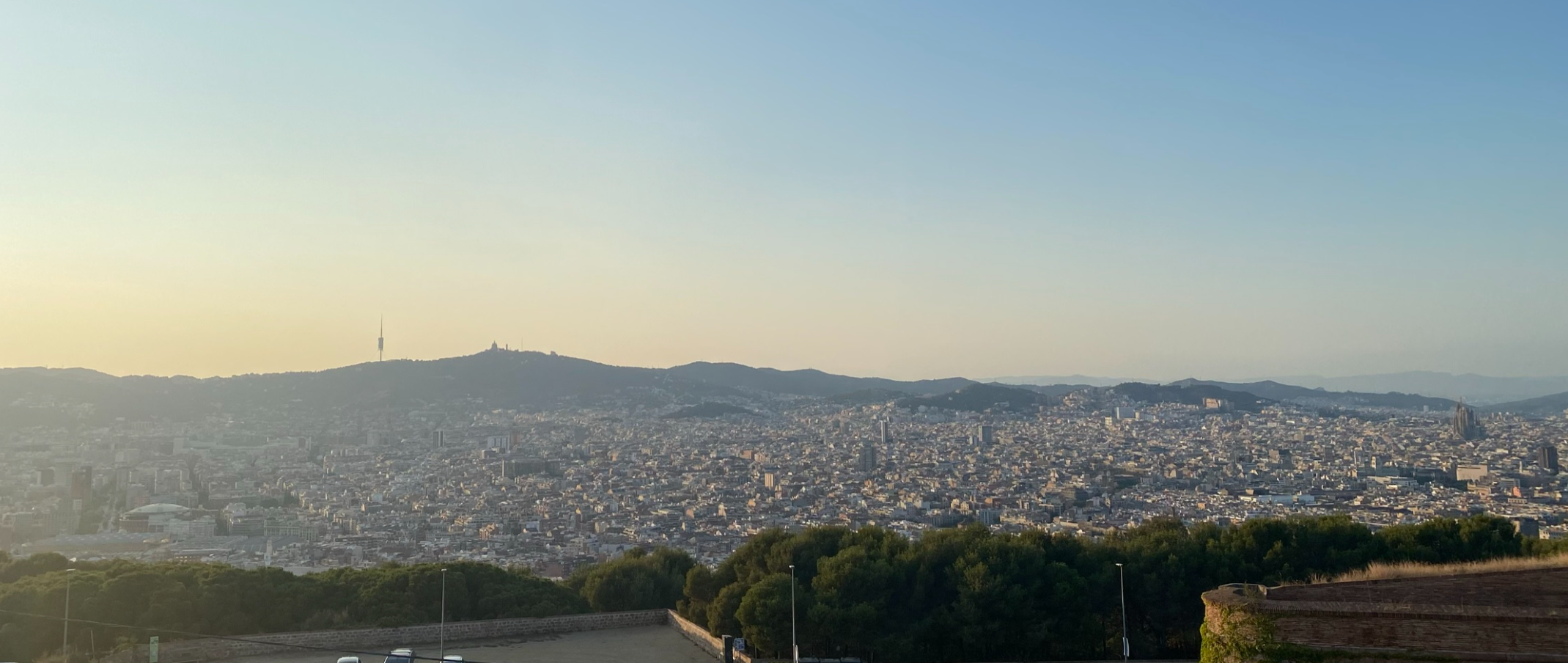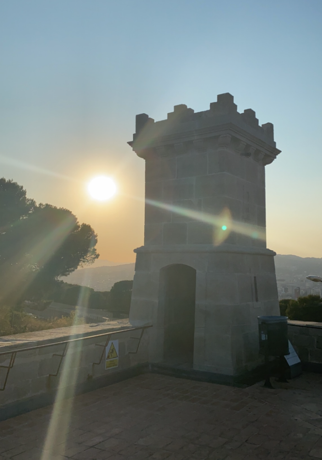 După plimbarea prin Park Güell, am mers în zona Montjuïc. Așadar, am luat funicularul de la Montjuïc și prima oprire a fost la Mirador Mossèn Cinto Verdaguer, un loc liniștit, cu grădini terasate și panorame largi asupra Barcelonei.