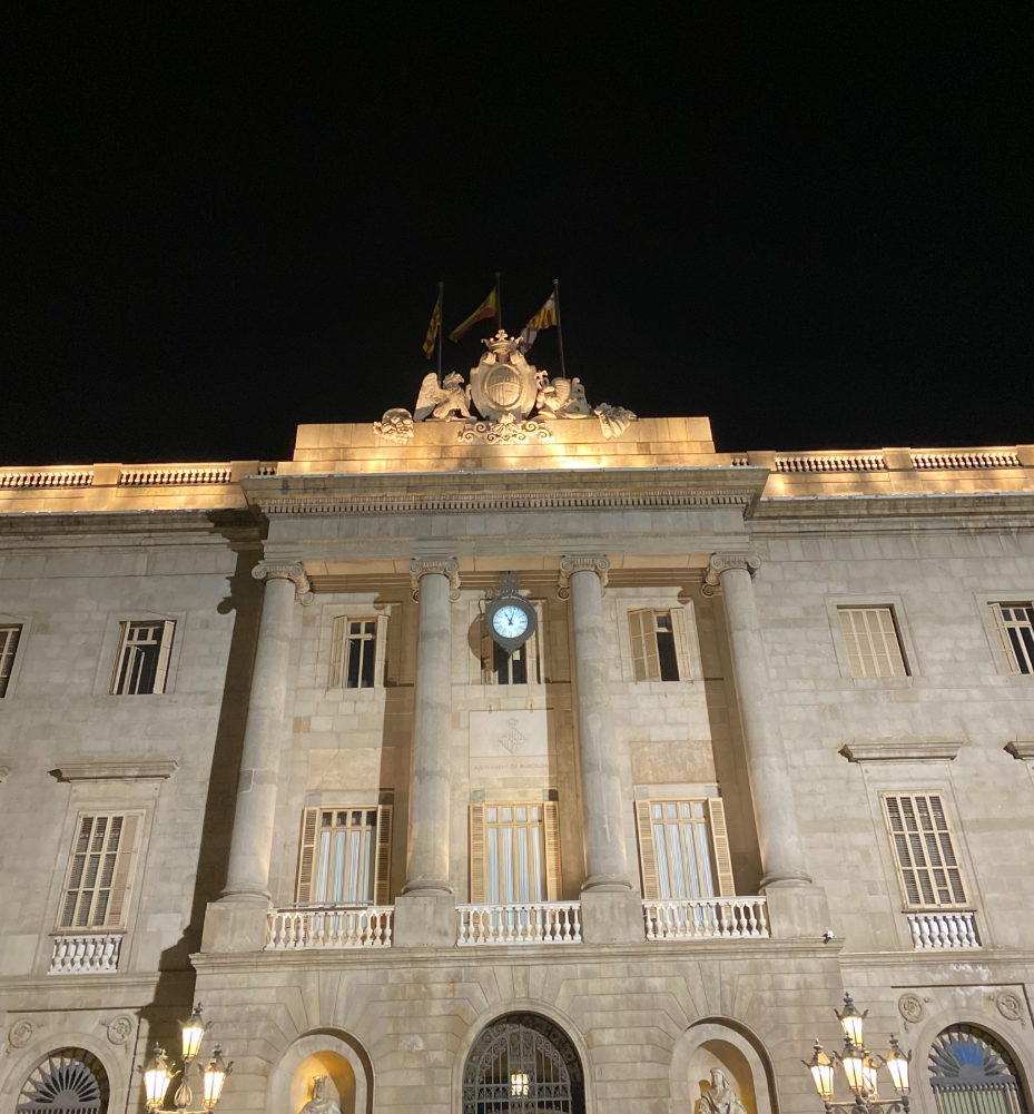 După vizită, am mers spre Plaça Sant Jaume, centrul administrativ al Barcelonei. Aici se află Palau de la Generalitat și Primăria. Piața este plină de viață, artiști stradali și turiști.