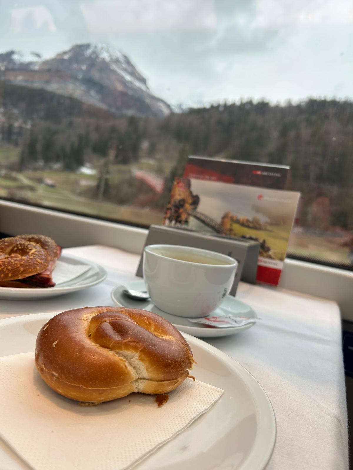 Trenul nu are vagon restaurant, așa că este recomandat să aveți o gustare și băutări. Noi ne-am luat o cafea înainte să ajungem în gară și am savurat-o din plin în timp ce am admirat priveliștea.