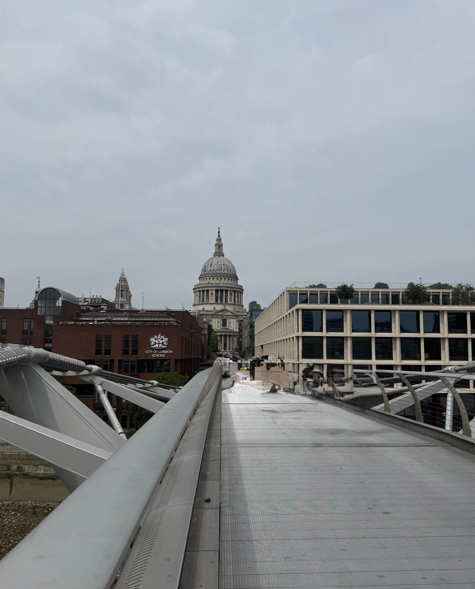 Următoarea oprire a fost Millennium Bridge, un pod pietonal modern care leagă St Paul’s Cathedral de Tate Modern. Este un pod suspendat din oțel, lung de 330 m, foarte popular pentru fotografii și pentru priveliștea asupra Tamisei.