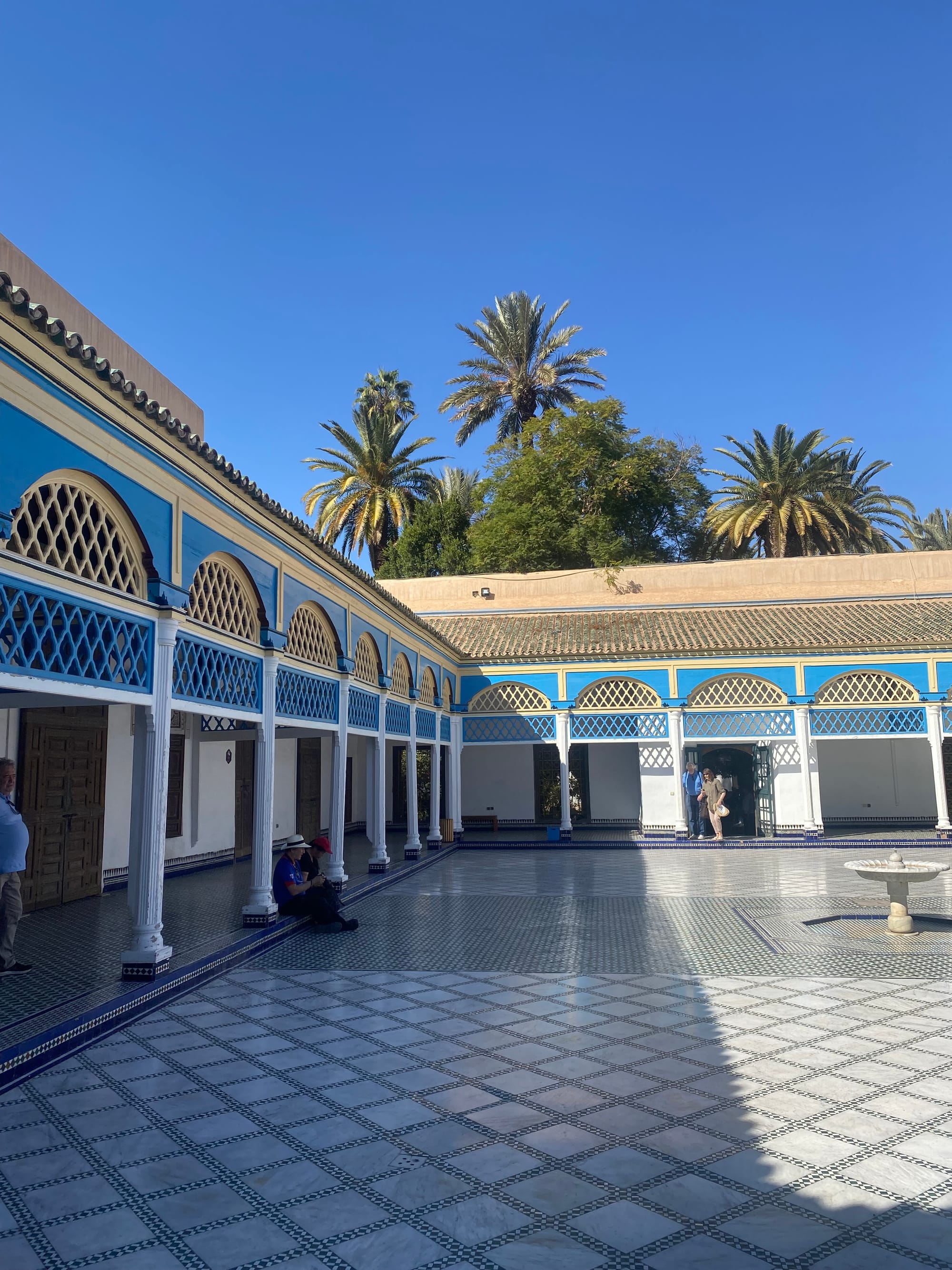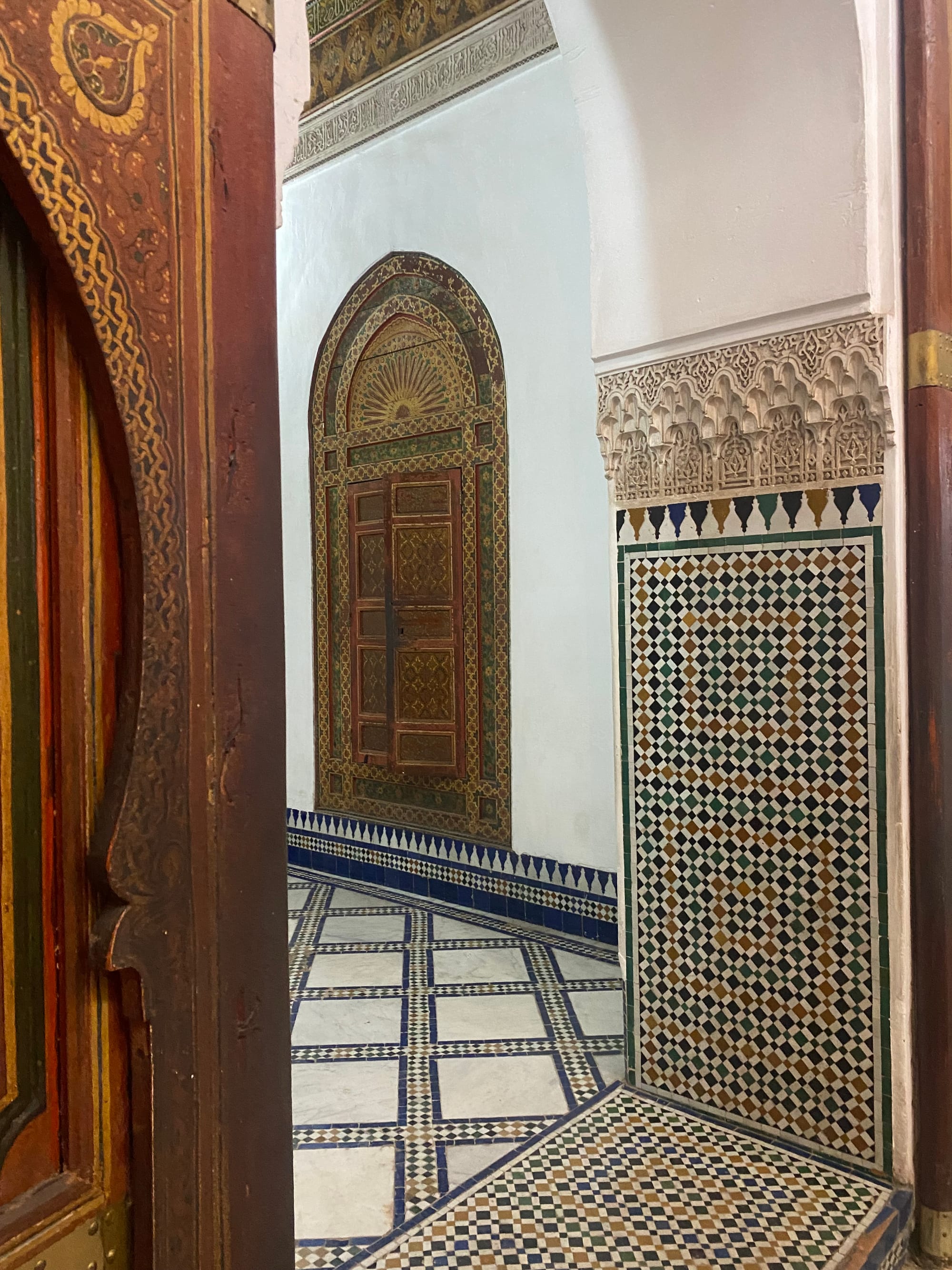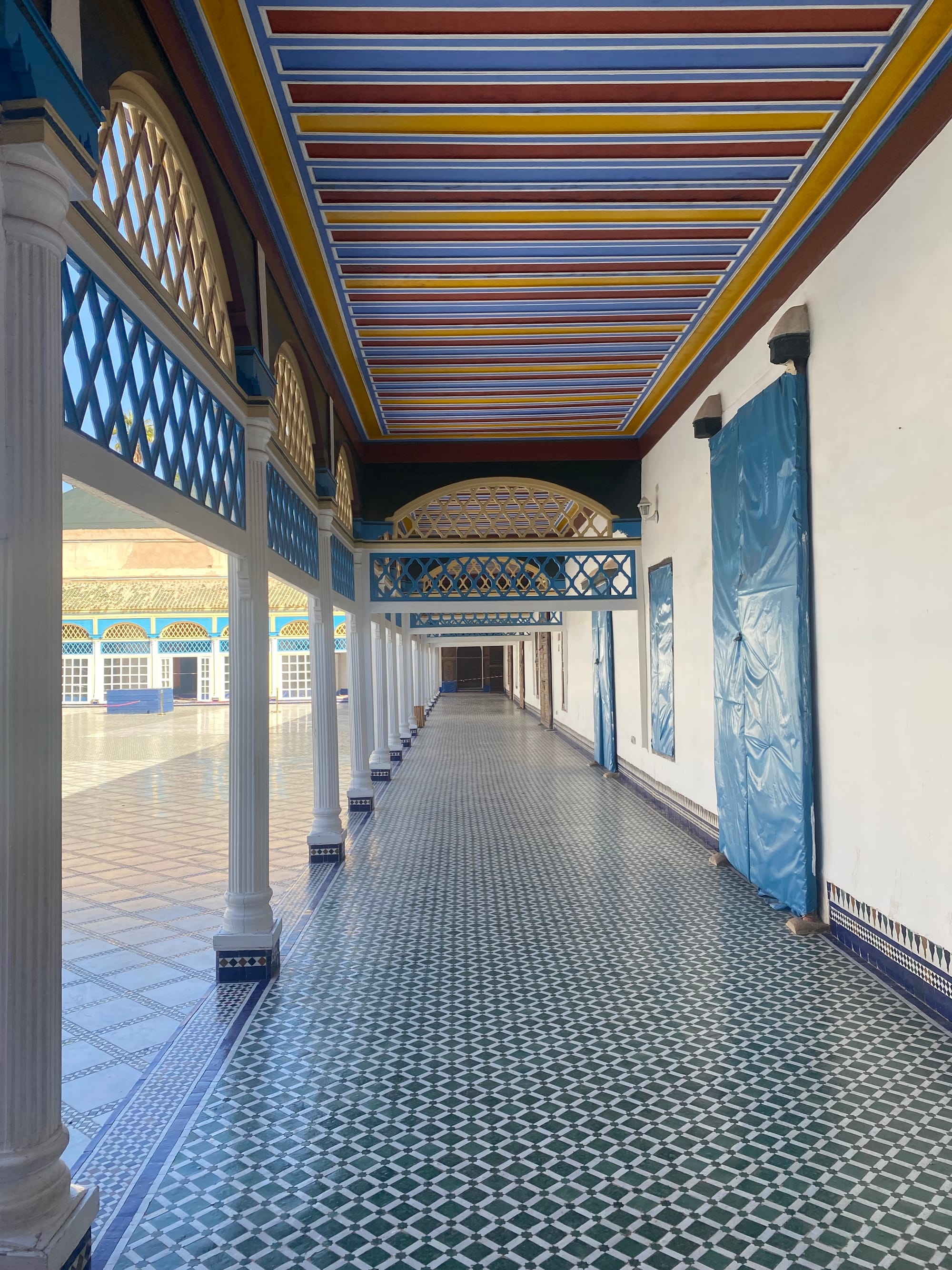 Palatul este format din culoare înguste și colorate care au în capăt sau pe laterale uși masive din lemn cu modele specifice tradiției marocane.