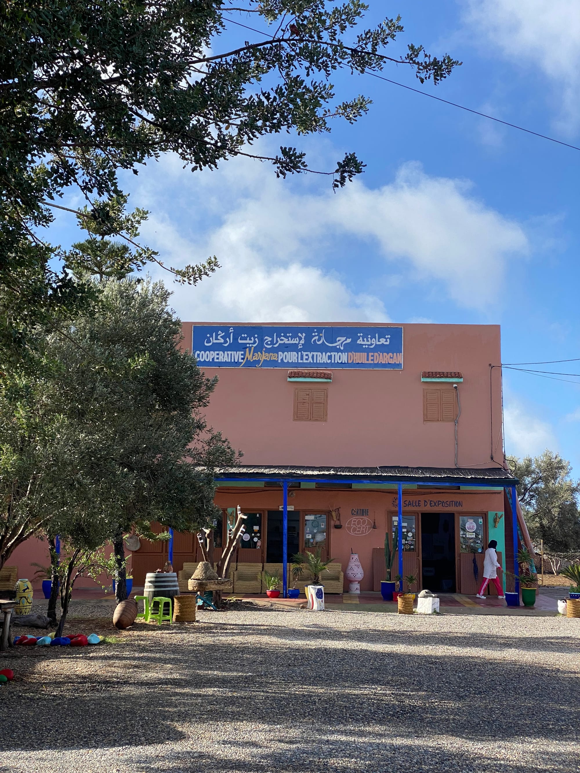 Drumul din Marrakech pana în Essaouira este de aproximativ 3 ore și pe drum am avut o prima oprire sa mâncăm ceva și apoi am oprit la o cooperativa a femeilor care realizează uleiul de argan. În mare parte, femeile fără școală au ca și ocupație fabricarea uleiului de argan sau a preparatelor din fructe de argan. În multe zone din Maroc sunt plantații întinse de copaci de argan, dar și măslini deoarece sunt singurii copaci care rezista sezonului uscat și soarelui arzător.