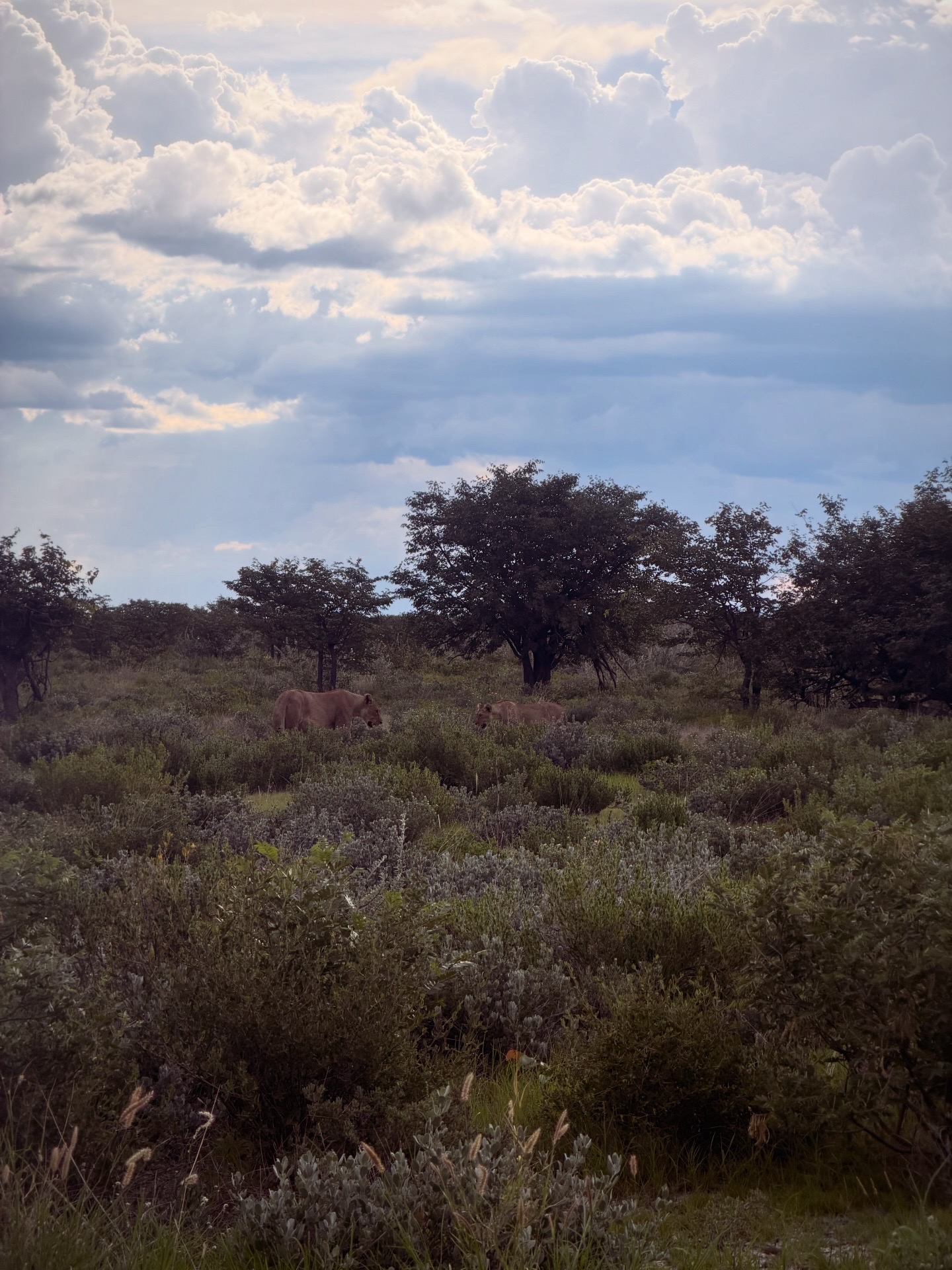 În plimbarea noastră am întâlnit Oryx, turme întregi de antilope, mai multe zebre, struți și alte păsări interesante, doi șacali relaxați, grupuri de girafe, dar am fost foarte norocoși, deoarece am avut ocazia să vedem și doi elefanți, dar și un grup de lei care își savurau prada. Am primit mai mult decât ne-am putut imagina. Etosha ne-a recompensat din plin vizita.