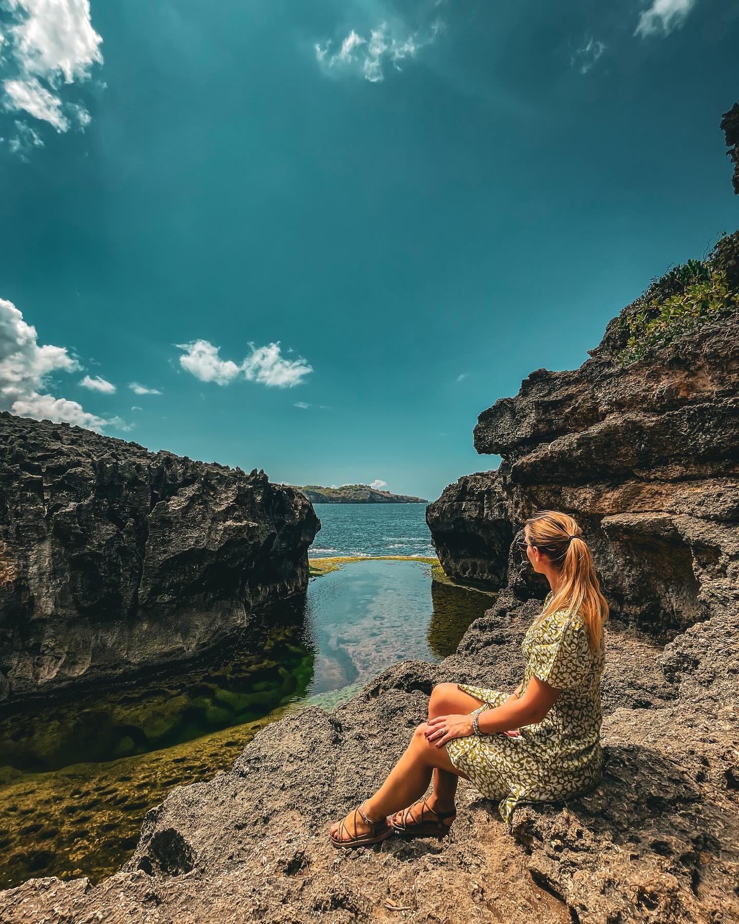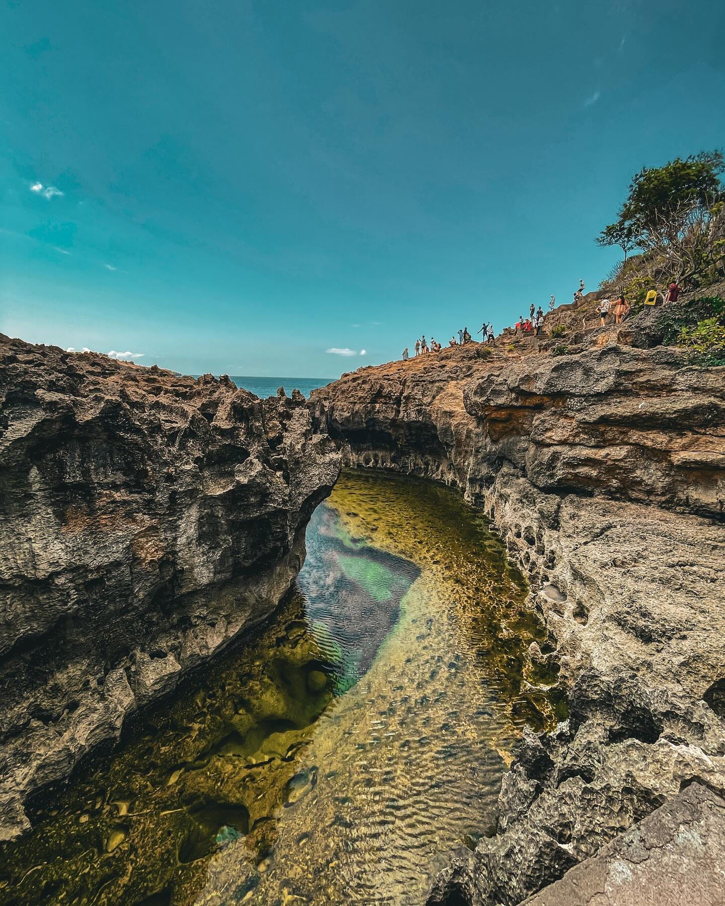 O lagună naturală formată printre stânci, cu o iluzie optică care îți dă impresia că se continuă în ocean. De fapt este chiar invers, oceanul se revarsă în lagună când valurile sunt mari.