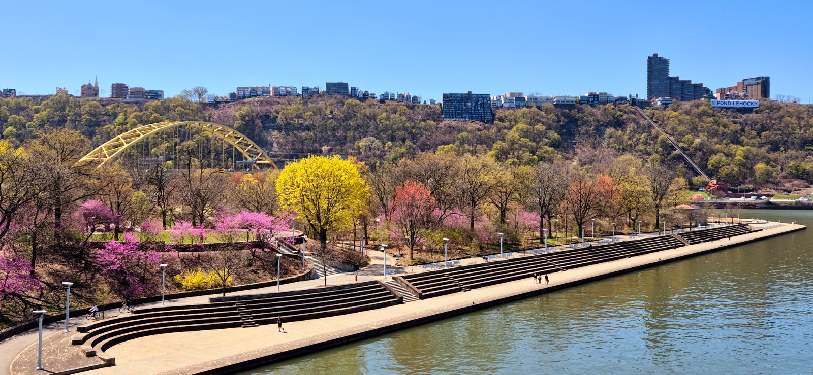 Pittsburgh e așezat exact acolo unde se întâlnesc râurile Allegheny și Monongahela, care formează împreună râul Ohio. De sus, de la punctul de belvedere de pe Mount Washington, se vede perfect această intersecție – una dintre cele mai spectaculoase priveliști urbane din America. Seara, când luminile podurilor și ale clădirilor se reflectă în apă, ai impresia că tot orașul plutește. Acesta este și motivul pentru care orașul are și această denumire. De o parte și de alta a râurilor se află orașul dar zona de zgârie-nori este chiar în partea din centru al acestora. Pe lângă plimbarea de pe Mount Washington, merită luată o plimbare cu Duquesne Incline – funicularul roșu care urcă dealul și oferă una dintre cele mai iconice panorame din Pittsburgh. Poți urca pe o parte, apoi se face plimbarea și se poate lua funicularul din cealaltă parte. Biletul a costat 5 dolari dus - întors sau 2.50 dolari doar dus/ întors.