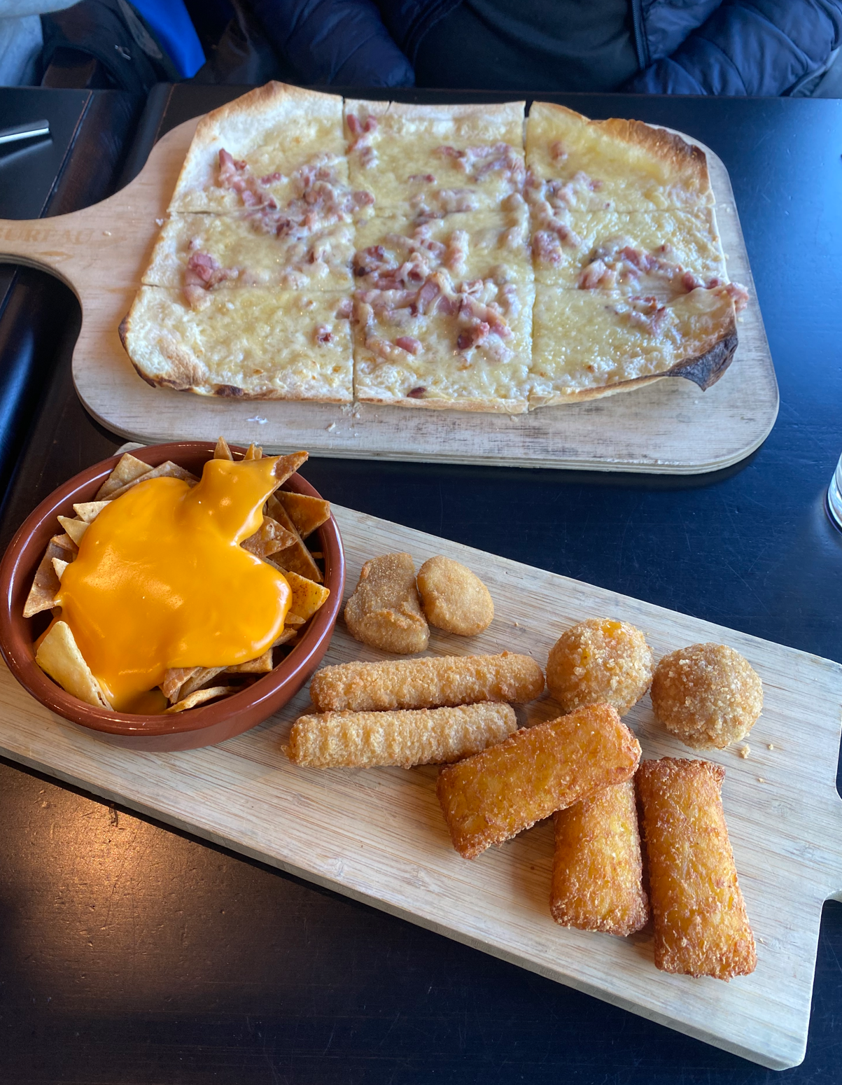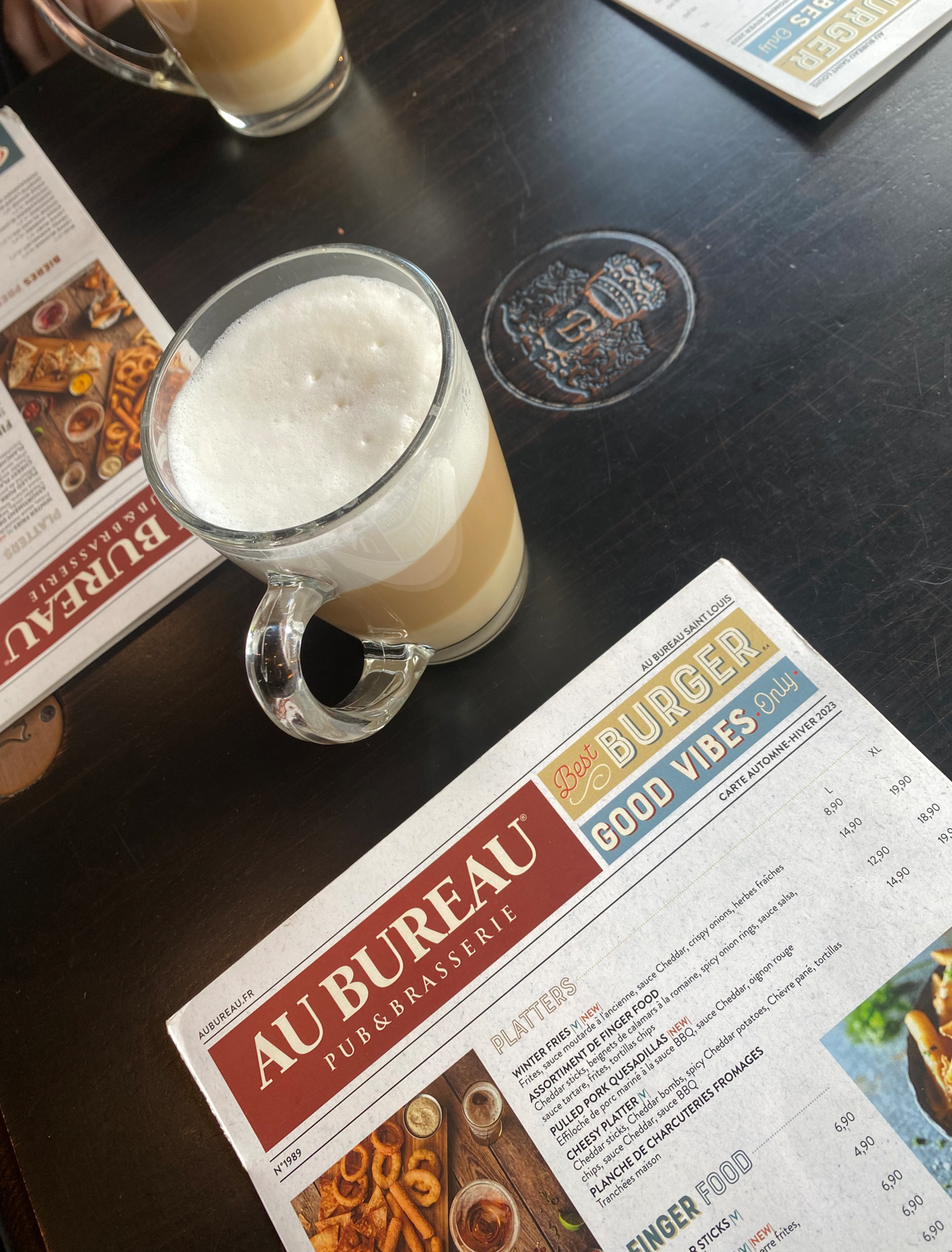 Am ales să mergem la Au Bureau pentru a încerca Flammekueche (tarte flambée), care este una dintre specialitățile de bază ale meniului, fiind un preparat tradițional din regiunea Alsacia. Am găsit aici acest preparat întrucât Au Bureau este un pub-restaurant cu specific franțuzesc, dar și cu influențe britanice, inspirat de pub-urile londoneze tradiționale. Mi s-a părut un loc popular pentru ieșiri relaxate și mi-a plăcut vibe-ul locului: muzică bună, oameni zâmbitori, mâncare excelentă.