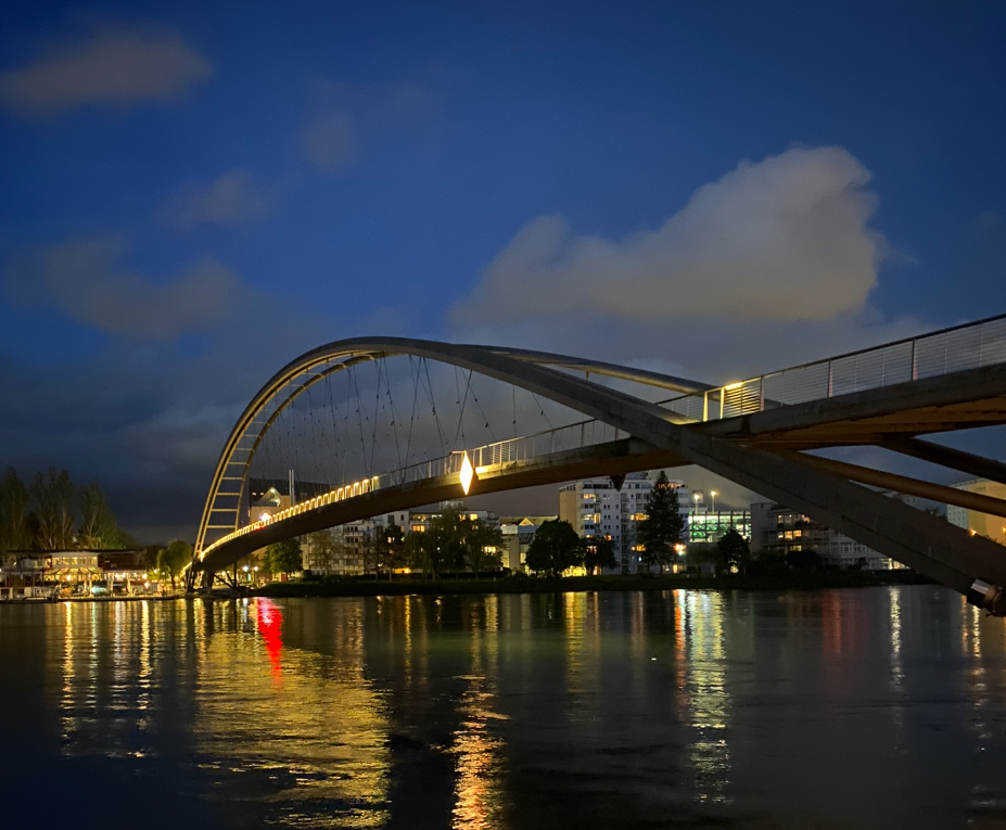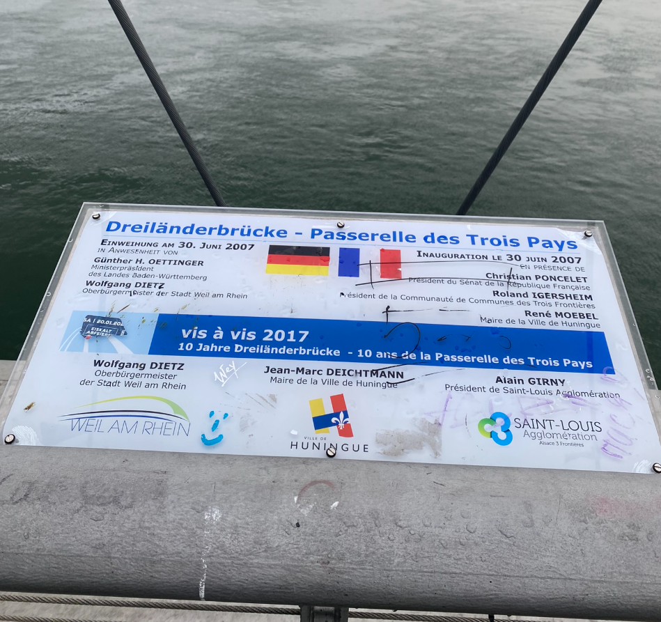 După ce am luat masa, am pornit pe jos spre Passerelle des Trois Pays, o pasarelă pietonală spectaculoasă care unește Franța, Germania și Elveția. Este locul perfect pentru o plimbare, iar senzația de a trece dintr-o țară în alta în câteva secunde este foarte interesantă.