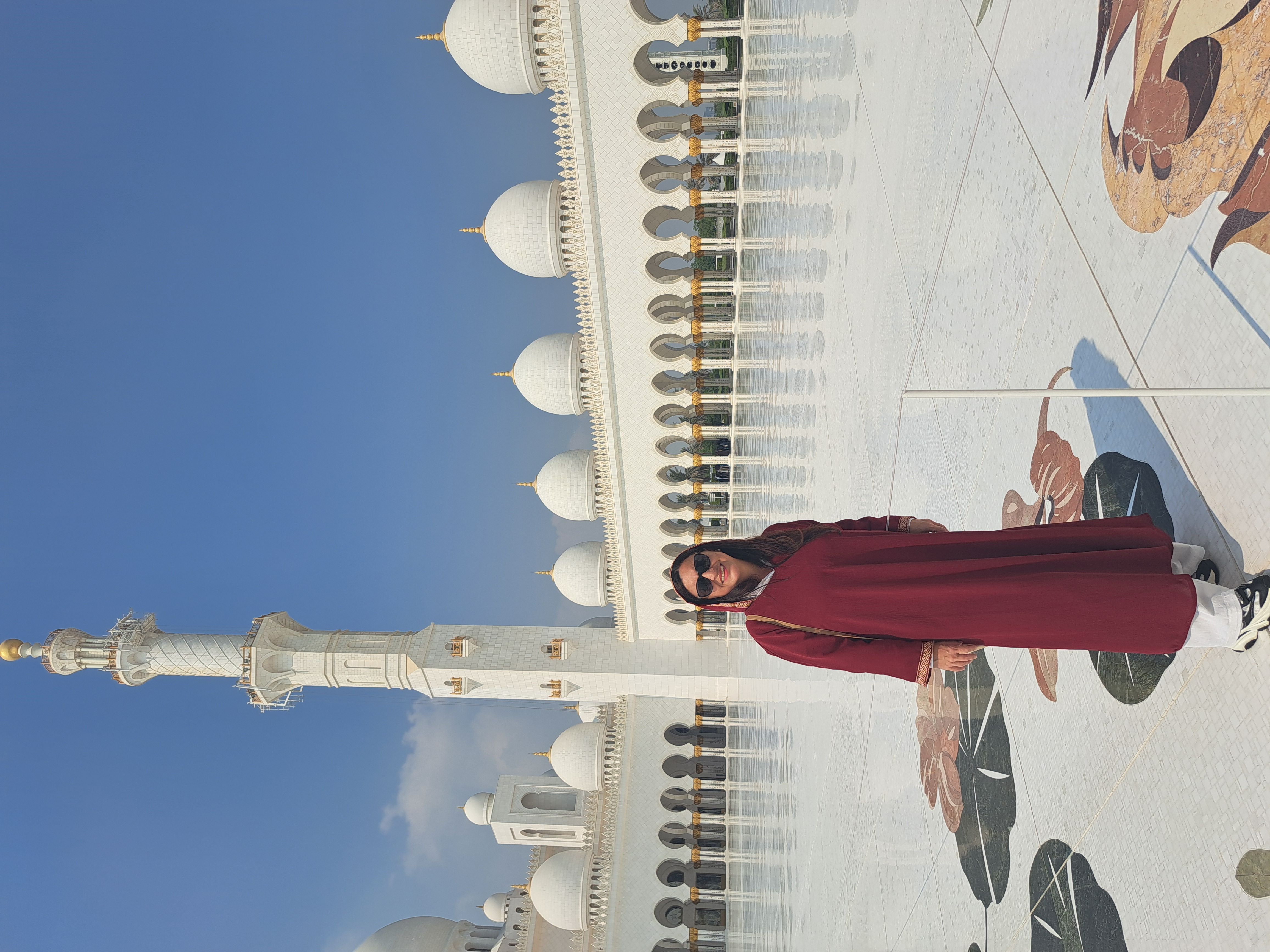 Dupa o calatorie de 1 ora, am ajuns la Sheikh Zayed Mosque, constructie emblematica si una dintre cele mai mari si vizitate moschei din lume. Detine cateva recorduri mondiale adapostind cel mai mare covor lucrat manual si candelabre gigantice din cristal Swarovski placate cu aur de 24 de carate.