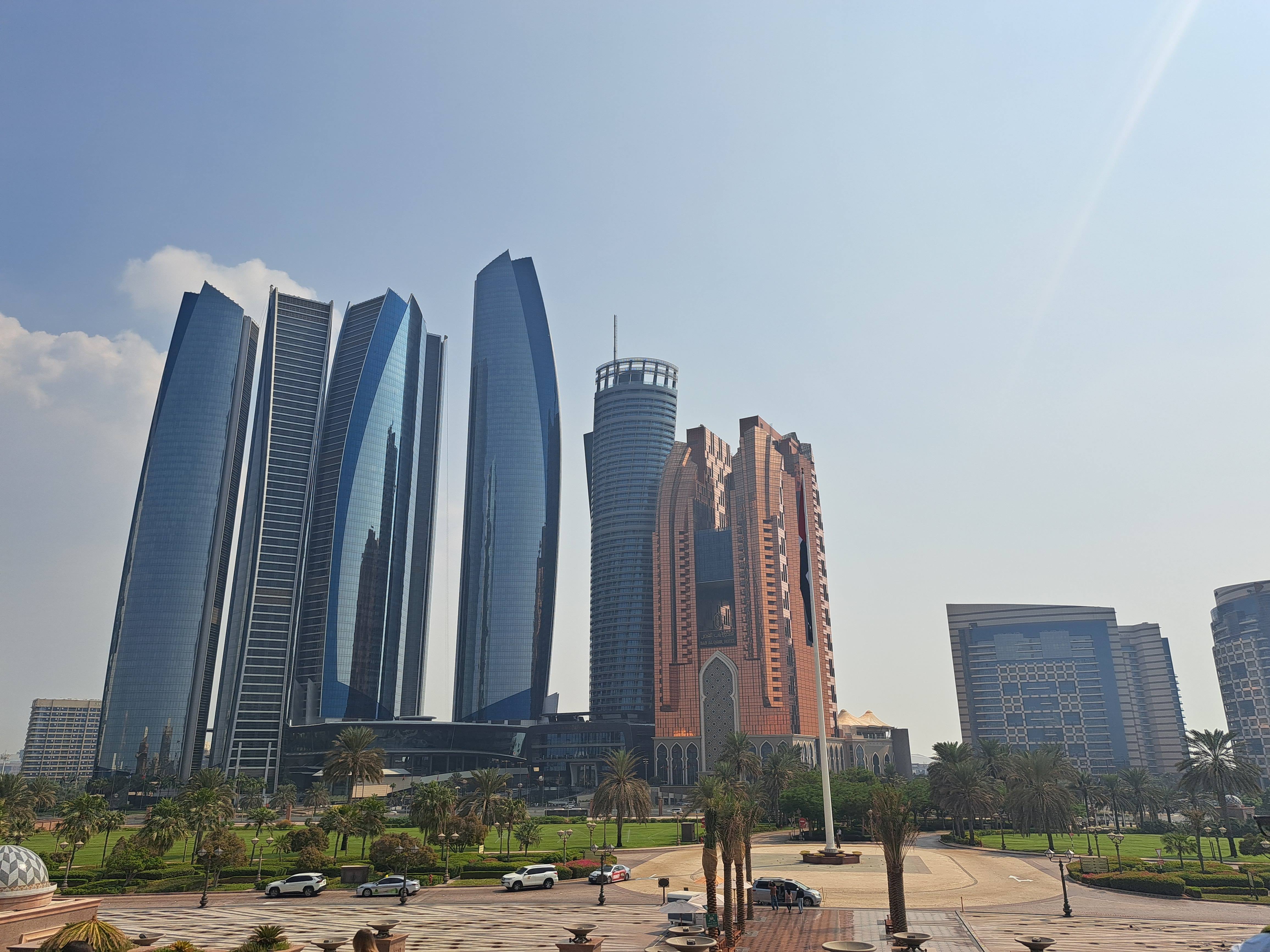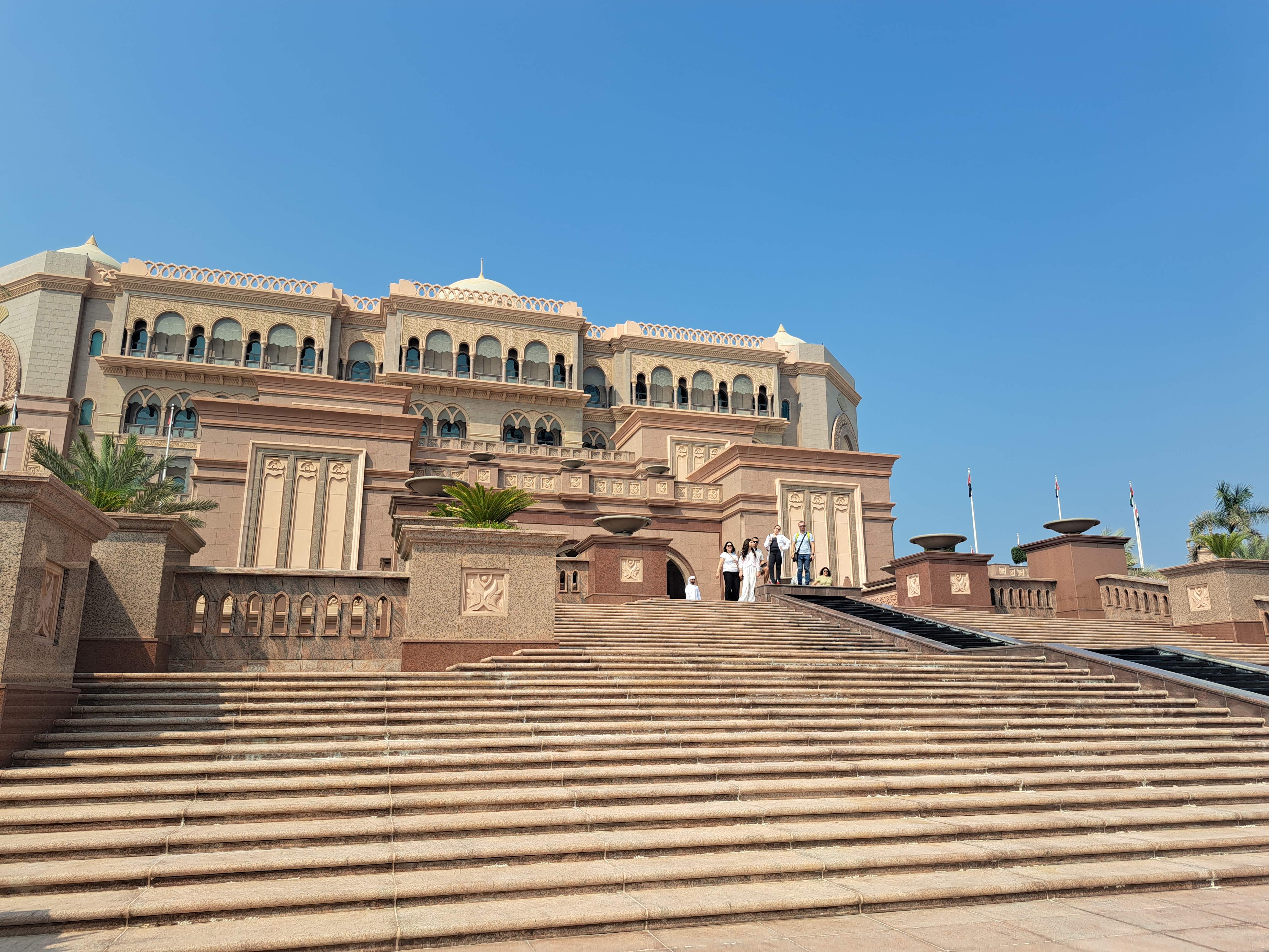 Ne-am continuat apoi calatoria catre Emirates Palace, o alta constructie reprezentativa, un hotel de de 5 stele, renumit pentru opulenta, arhitectura si servicii de lux. Este deschis publicului, vizitatorii putand intra gratuit in zona de lobby si receptie. O experienta aparte aici, este savurarea unei cafele sau prajituri cu foita de aur. Ne-am plimbat putin prin incinta, respirand si noi putin luxul locului si am facut poze superbe cu Etihaed Towers de pe terasa palatului.
