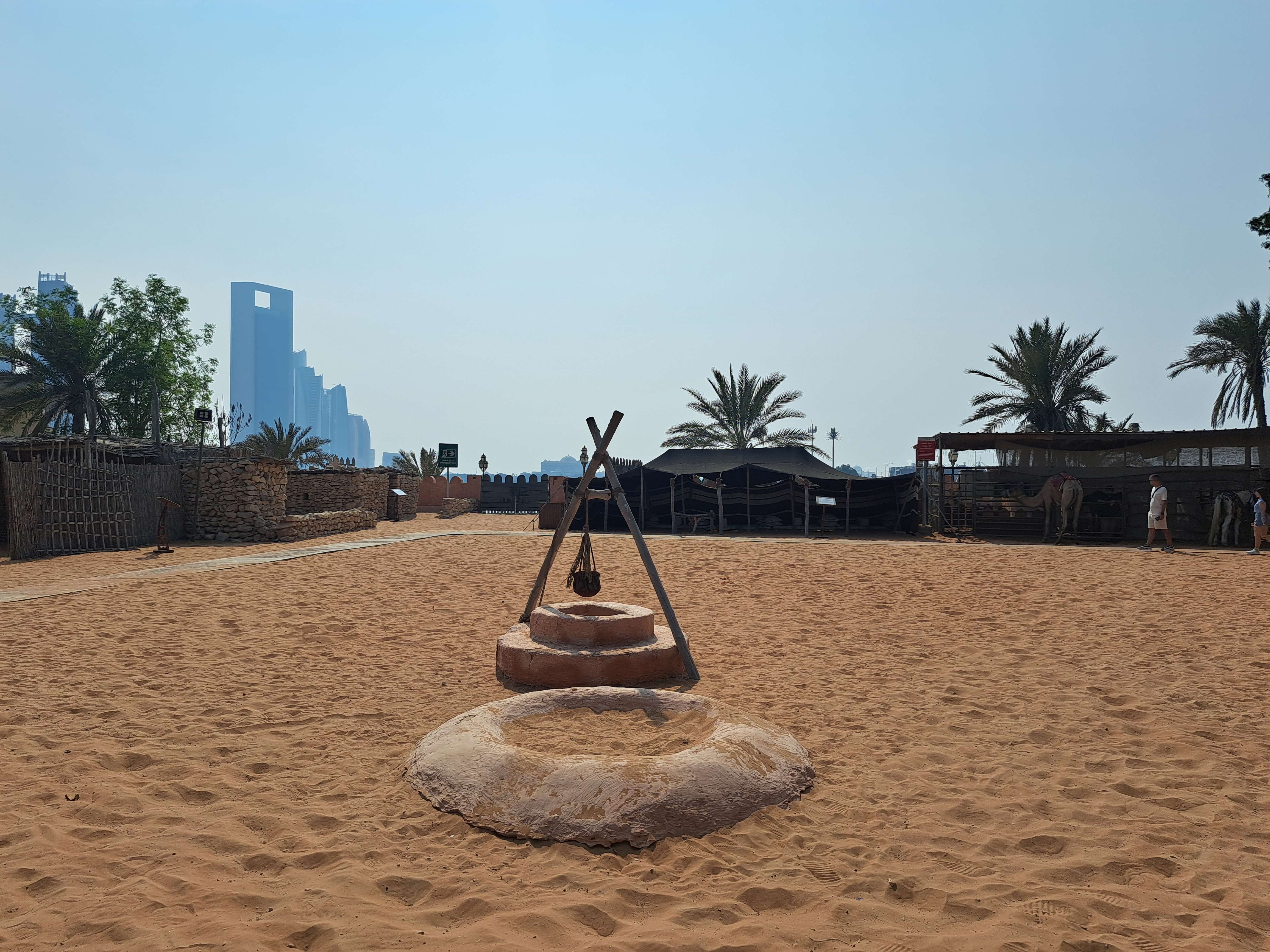 Urmatoare oprire a fost la Heritage Village, un muzeu care ilustreaza viata traditionala inainte de modernizarea rapida a orasului, prezentand aspecte din viata beduinilor prin muzee si expozitii, ateliere de artizanat, souk-ul, satul beduin si oaza. Muzeul este situate pe Corniche, langa Marina Mall si se viziteaza gratuit. Desi era foarte cald, ne-am bucurat de locurile vazute si informatiile primite.