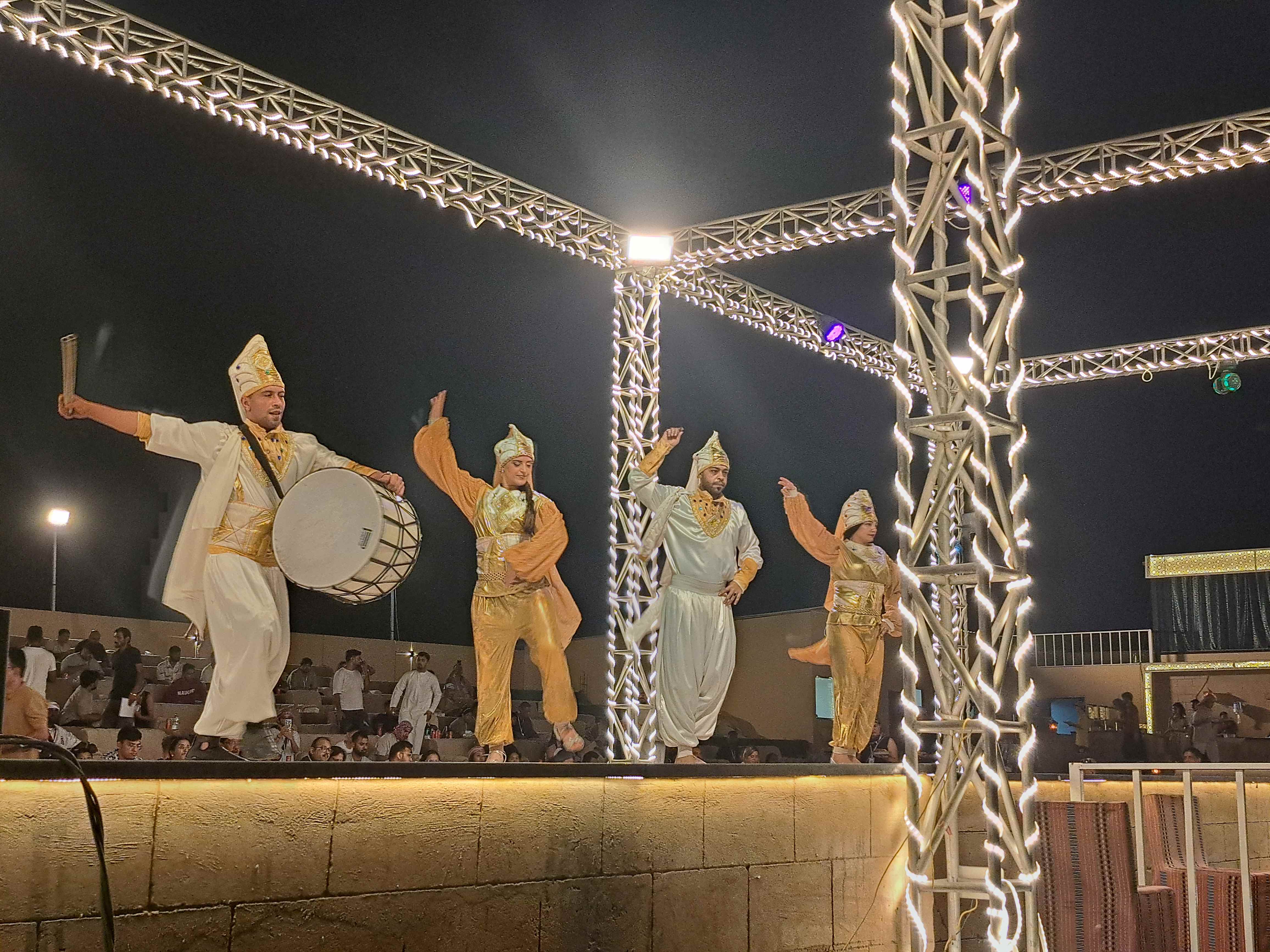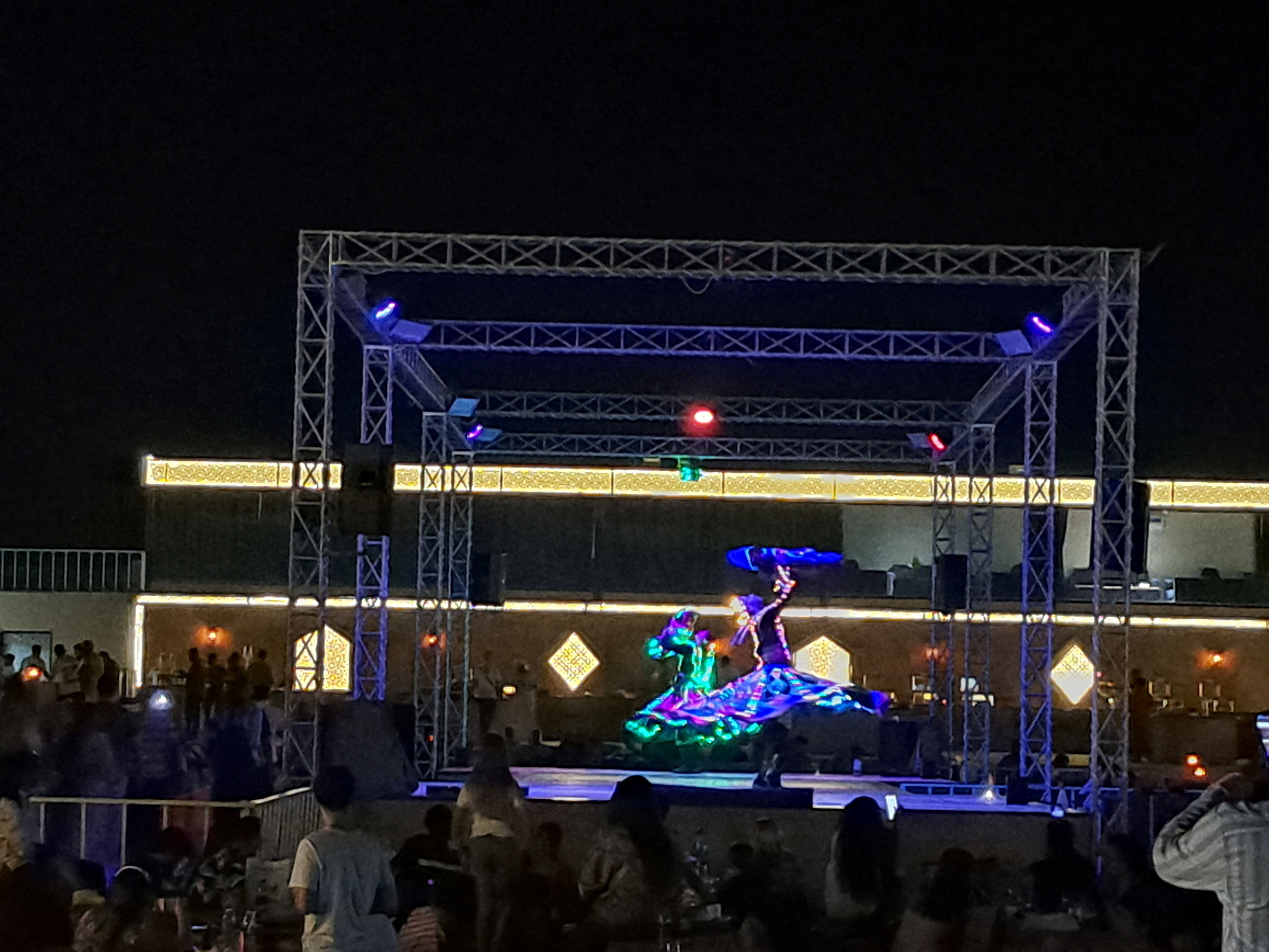 In tot acest timp se derula un spectacol cu dansatoare din buric, aruncatori de flacari, dervisi rotitori, dansuri traditionale.