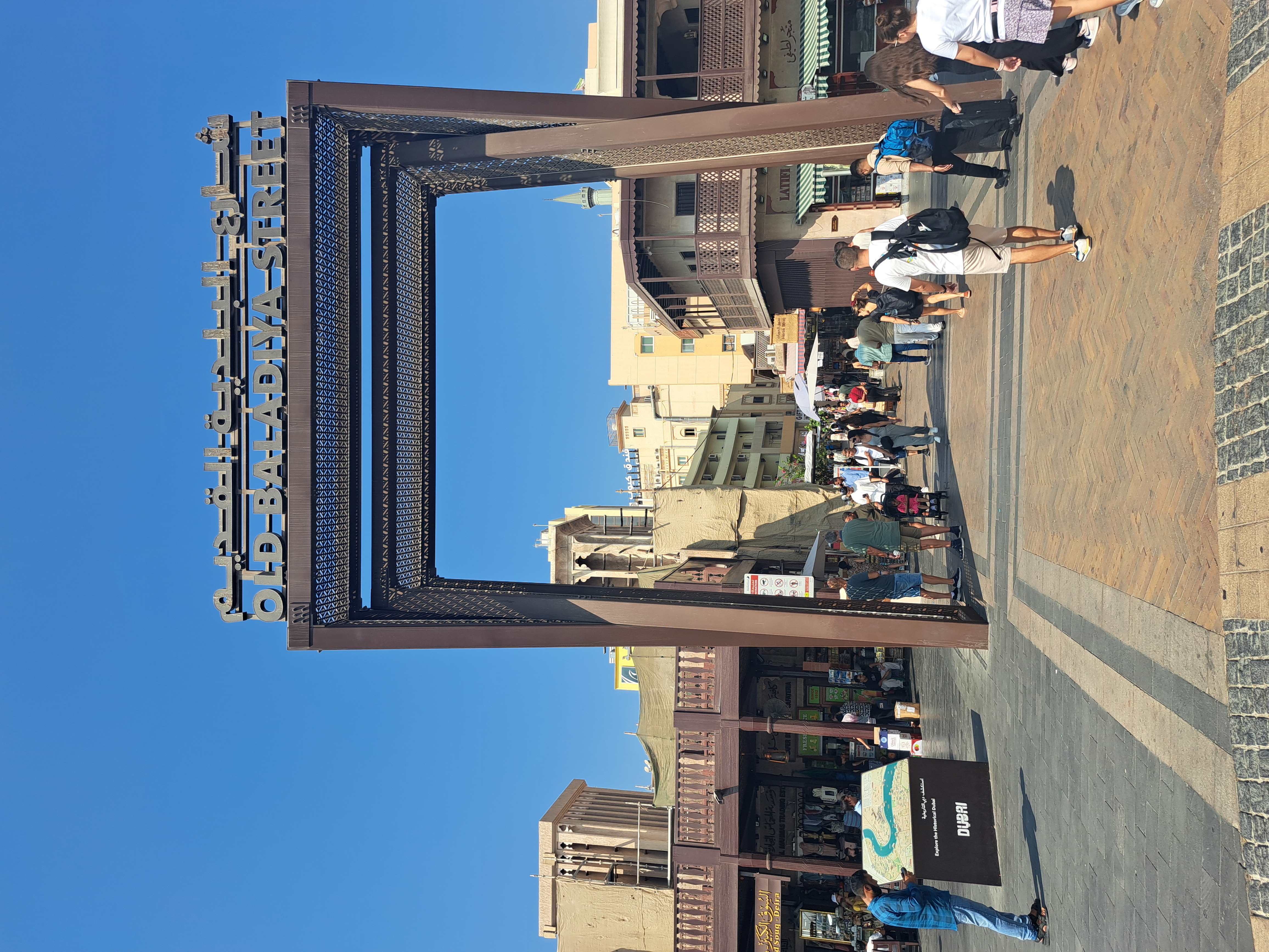 Am plecat din statia de metro Mall of The Emirates pe linia rosie pana la statia Burjuman, unde am coborat si ne-am continuat calatoria pe jos spre Souk Al Seef, sub un soare arzator desi nu era trecut de ora 11. Am patruns apoi in cartierul istoric Al Fahidi, cu case vechi din piatra si ghips transformate in muzee, galerii de arta, cafenele, stradute inguste si pitoresti, oferind o perspectiva diferita asupra vietii anterioara dezvoltarii modern.