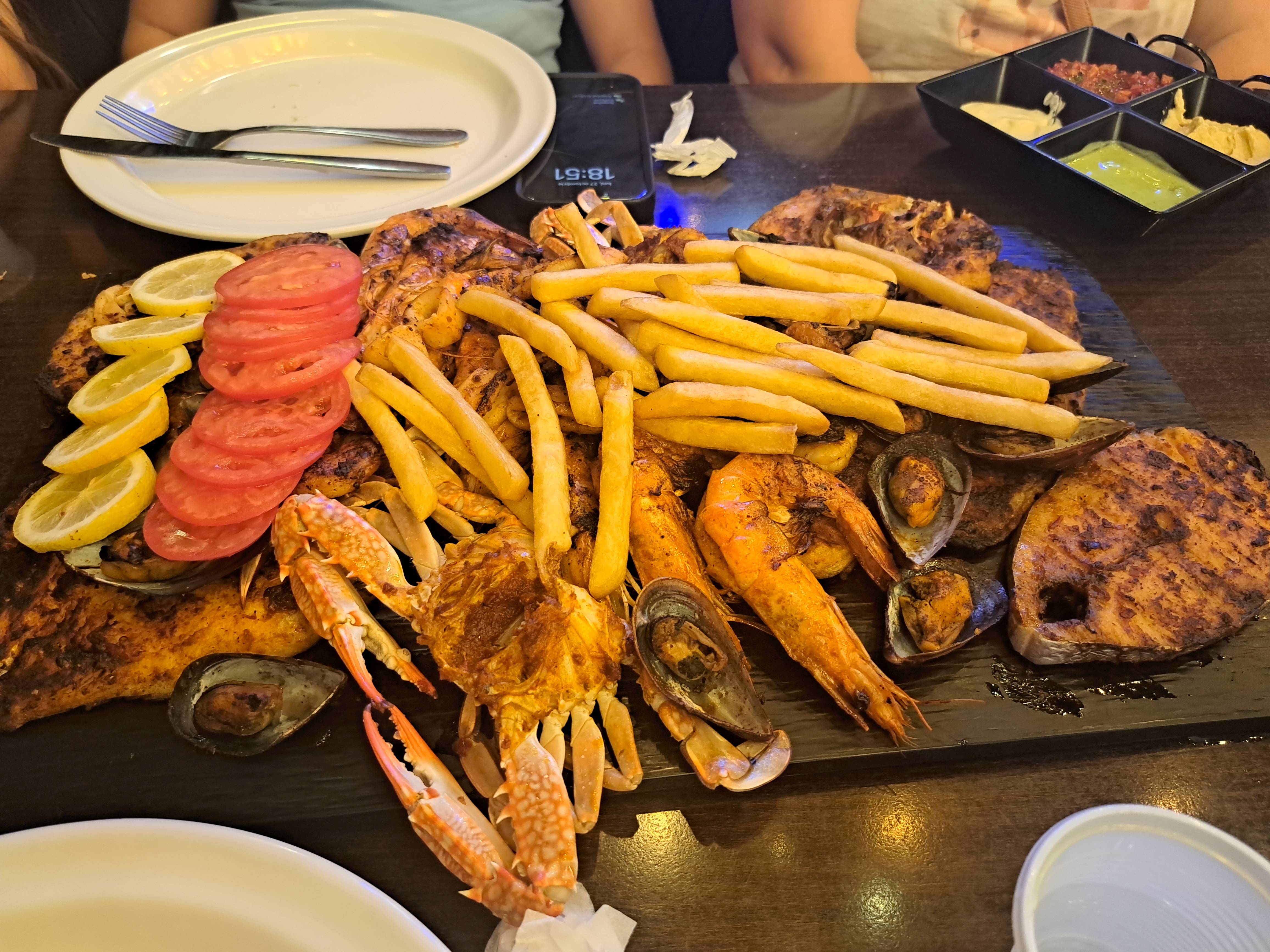 In general noi am mancat in resturante din cartierul nostru (Five Crowns Restaurant, Baba Grill, Mr Fish) si ne-am bucurat de mancare delicioasa la preturi foarte mici. O masa pentru toti 6 nu depasea 300 RON ( cei drept fara bauturi, doar apa).