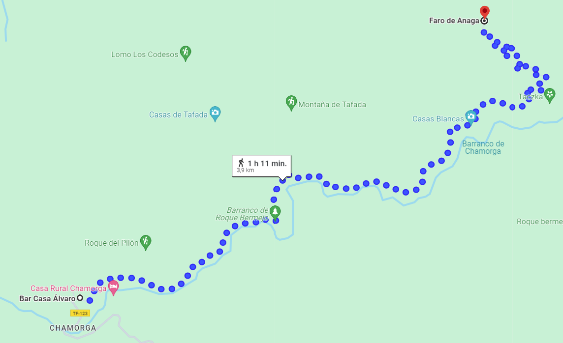 - Faro de Anaga - puteți lăsa mașina fix la acest bar, Casa Alvaro, iar semnul către Faro de Anaga este în apropiere. Poate fi considerat un traseu ușor spre mediu, din cauza condițiilor; ar fi bine dacă îl faceți atunci când este uscat pământul, dar nici în soarele de la ora 12.