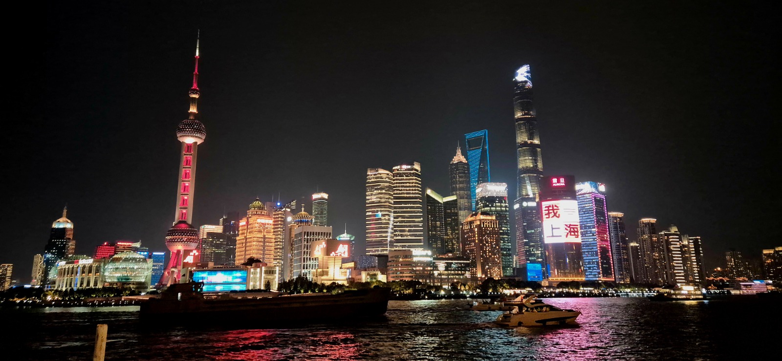 Seara, când luminile se aprind, orașul capătă o atmosferă aproape ireală. Ne-am întors a doua zi ca să vedem frumusețea zonei și în timpul zilei dar și să trecem cu metroul subteran în zona Pudong.