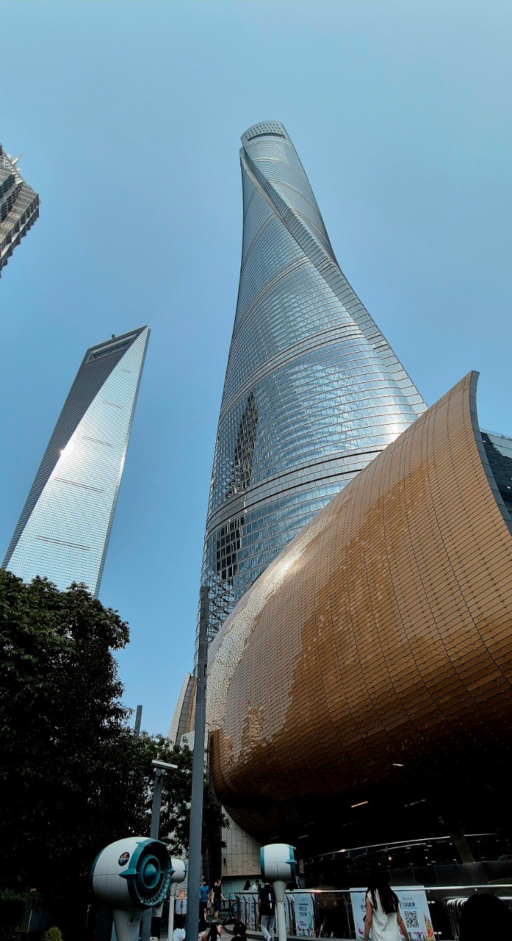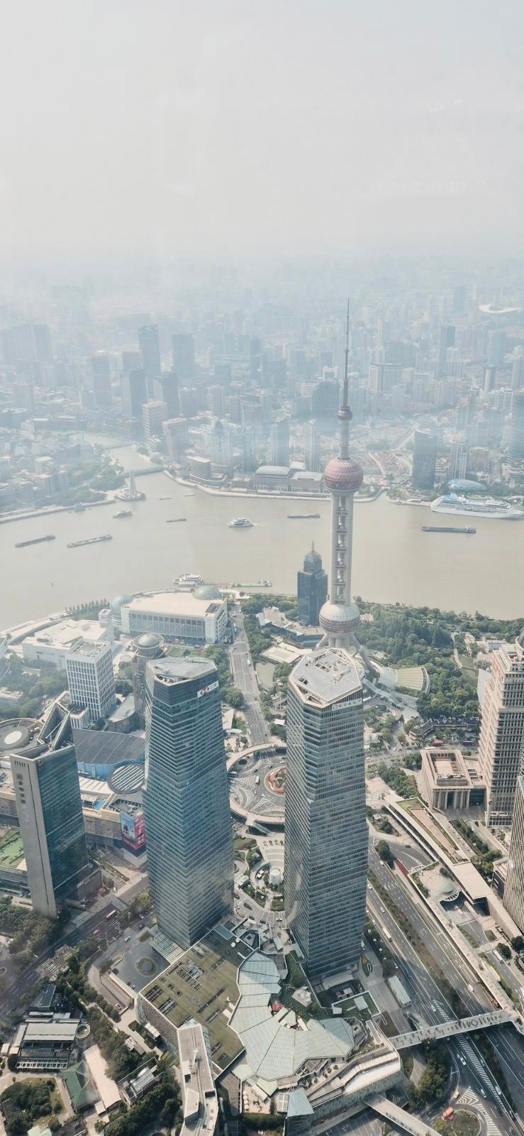 Am urcat în Shanghai Tower într-o zi senină și am avut senzația că orașul nu se mai termină. Ne-am apucat să vedem pe unde am fost și ce mai vizităm în următoarea zi pentru că erau destul de evidente mai ales clădirile înalte. Deși a fost o zi senină, de la 600 de metri se putea observa o ușoară pâclă de poluare care era deasupra orașului.