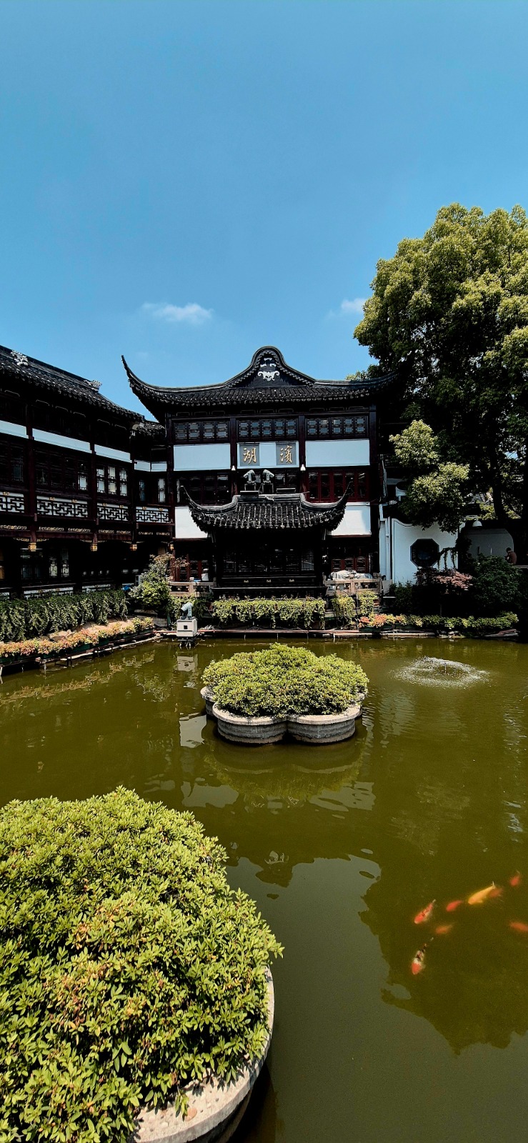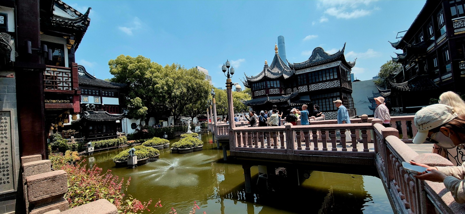 Pentru o pauză de la clădirile înalte și ca să revenim la tradițional, am intrat în Yuyuan Garden. Poduri arcuite, pavilioane tradiționale, iazuri cu pești koi – aici timpul parcă încetinește. Este locul perfect să înțelegi cum arată viața în China imperială.