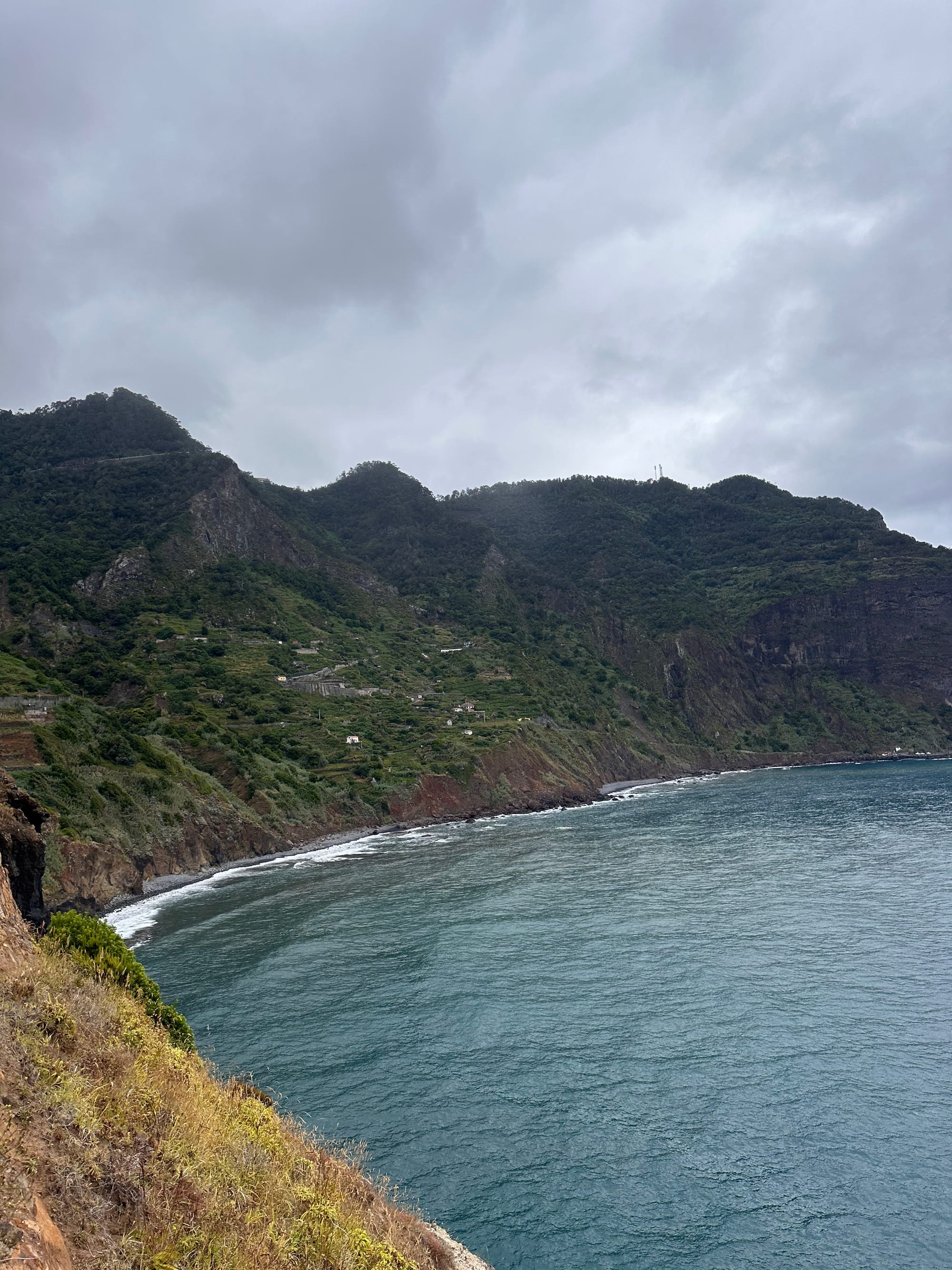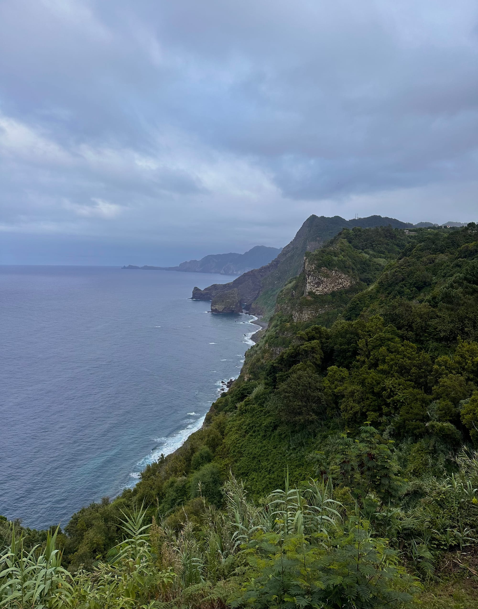 Privelistea de aici e spectaculoasă: coasta nordică se deschide brusc în fața ta, cu munți înalți, versanți verzi și oceanul izbindu-se ritmic de stâncile abrupte. Dacă ai noroc și e senin, poți vedea până spre Porto Moniz în depărtare.