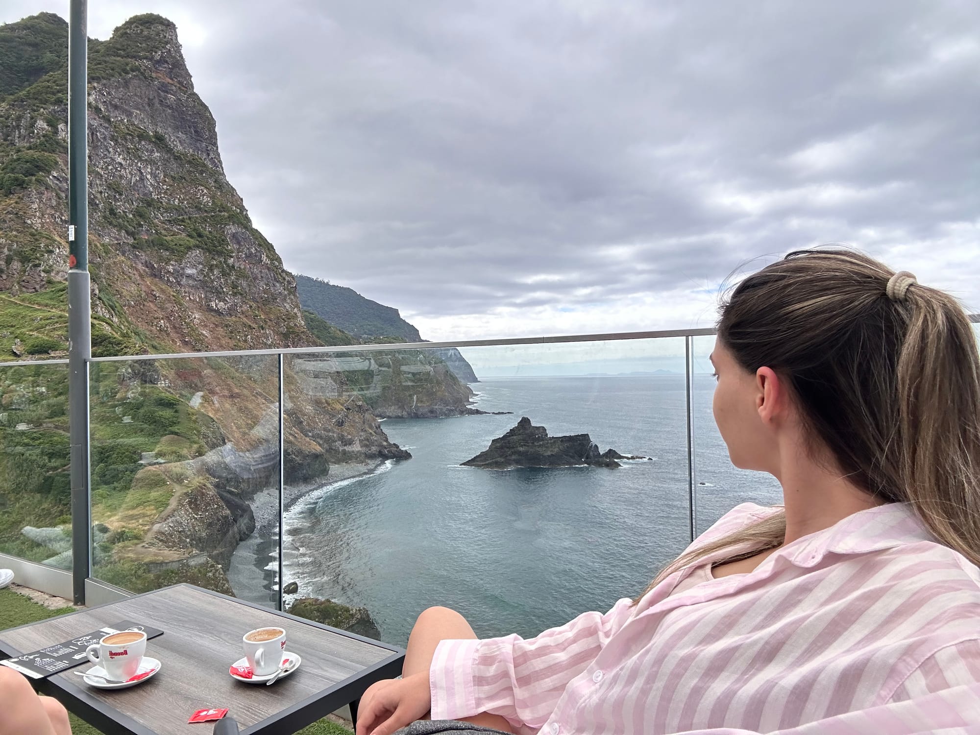 Ziua s-a încheiat sus, foarte sus – la Cabo Girão, una dintre cele mai înalte faleze marine din Europa. Priveliștea de aici e pur și simplu copleșitoare: 580 de metri de stâncă ce se prăbușește direct în ocean, iar tu stai pe o platformă de sticlă, privind în gol.