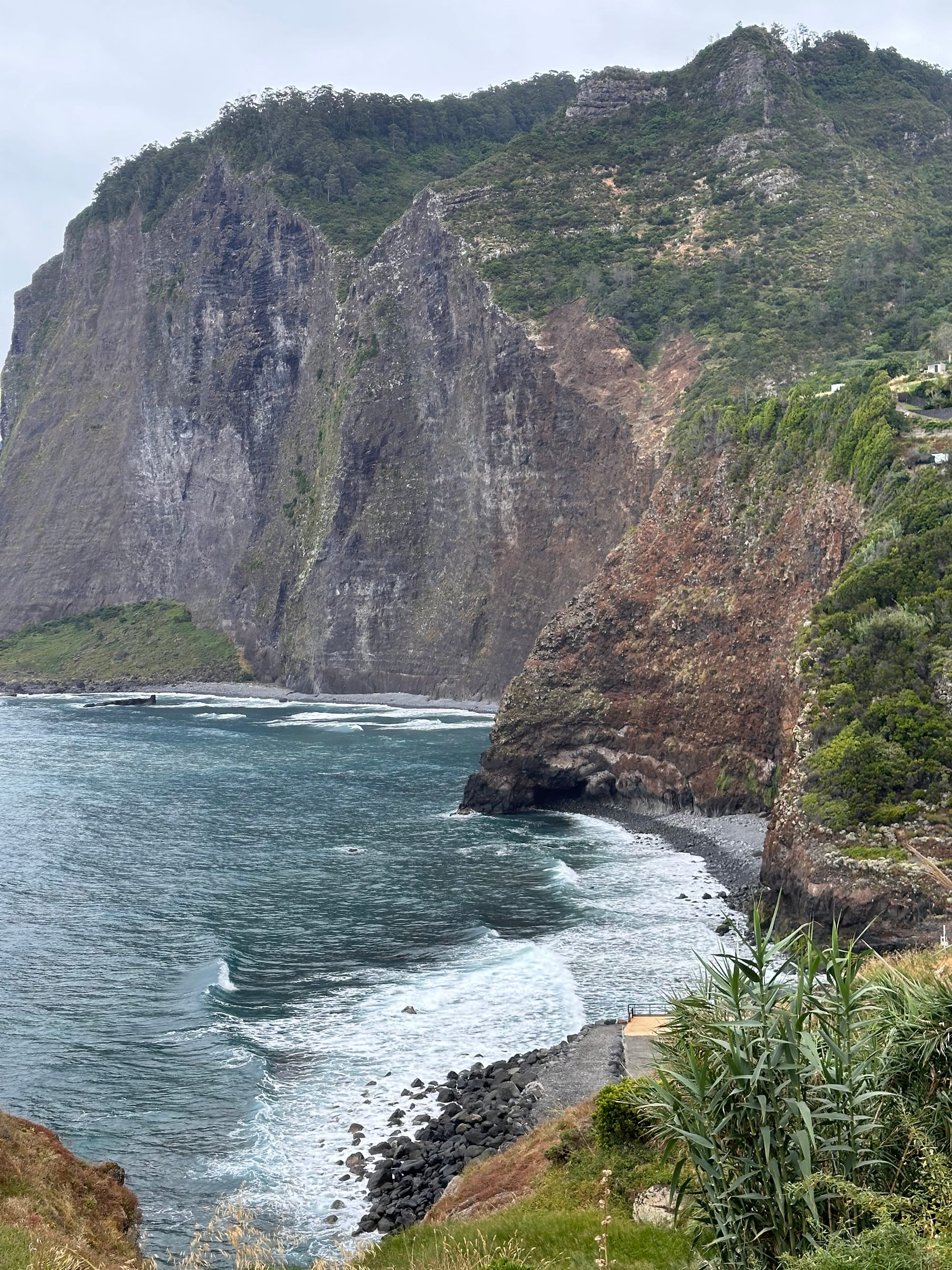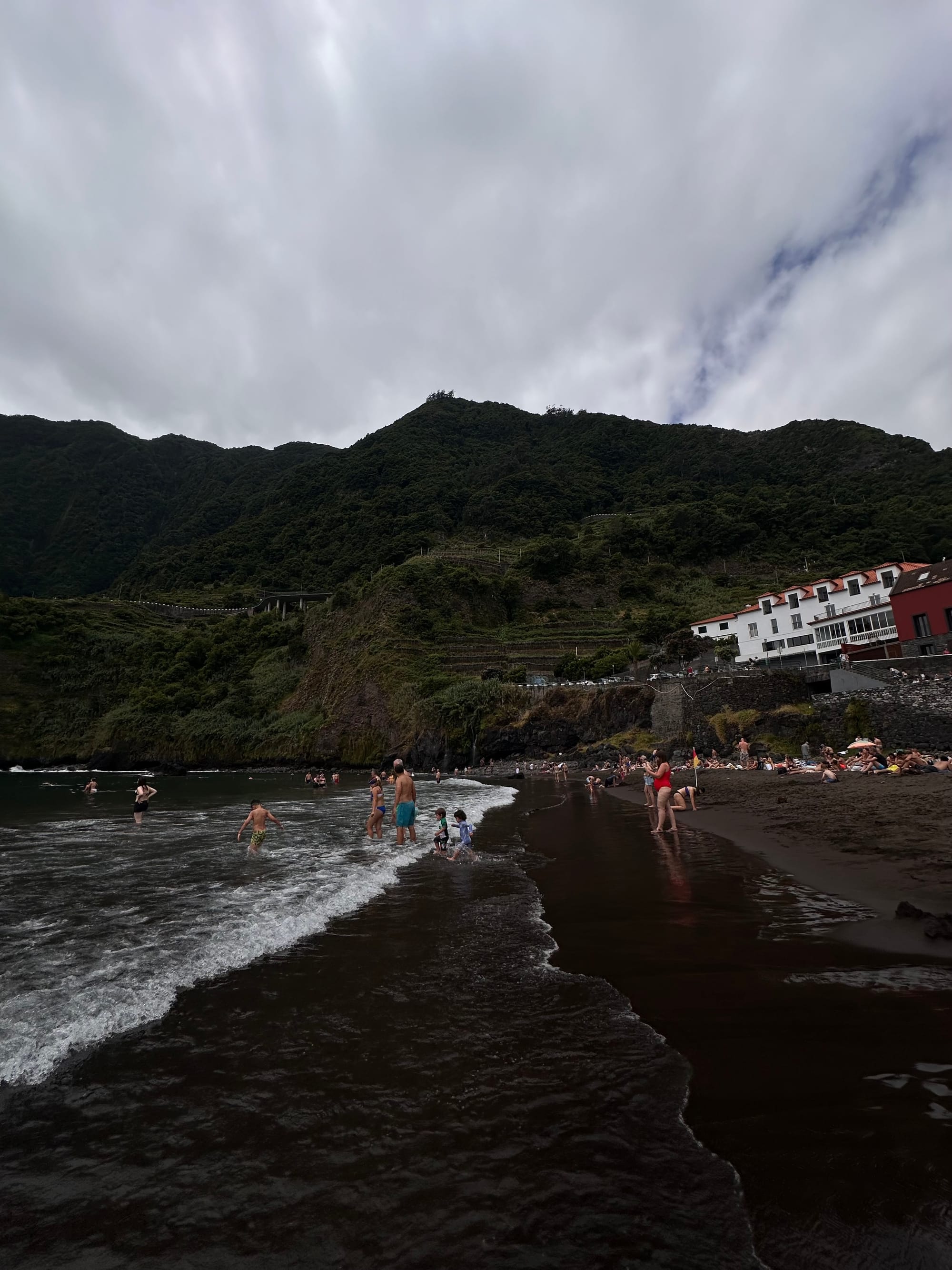 Seixal a fost o surpriză totală. Nisipul vulcanic e fin, negru ca cerneala, iar în jur sunt stânci verticale pline de verdeață și valuri oceanice care se sparg cu forță. Locul are un vibe sălbatic, cumva între Hawaii și Islanda, dar fără aglomerație.