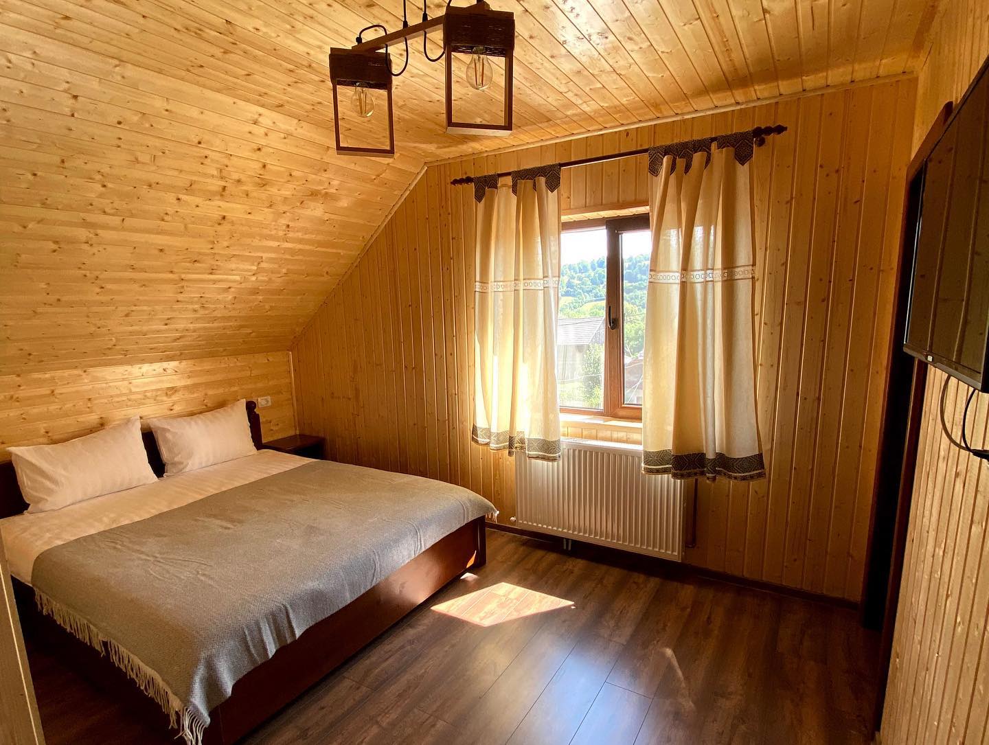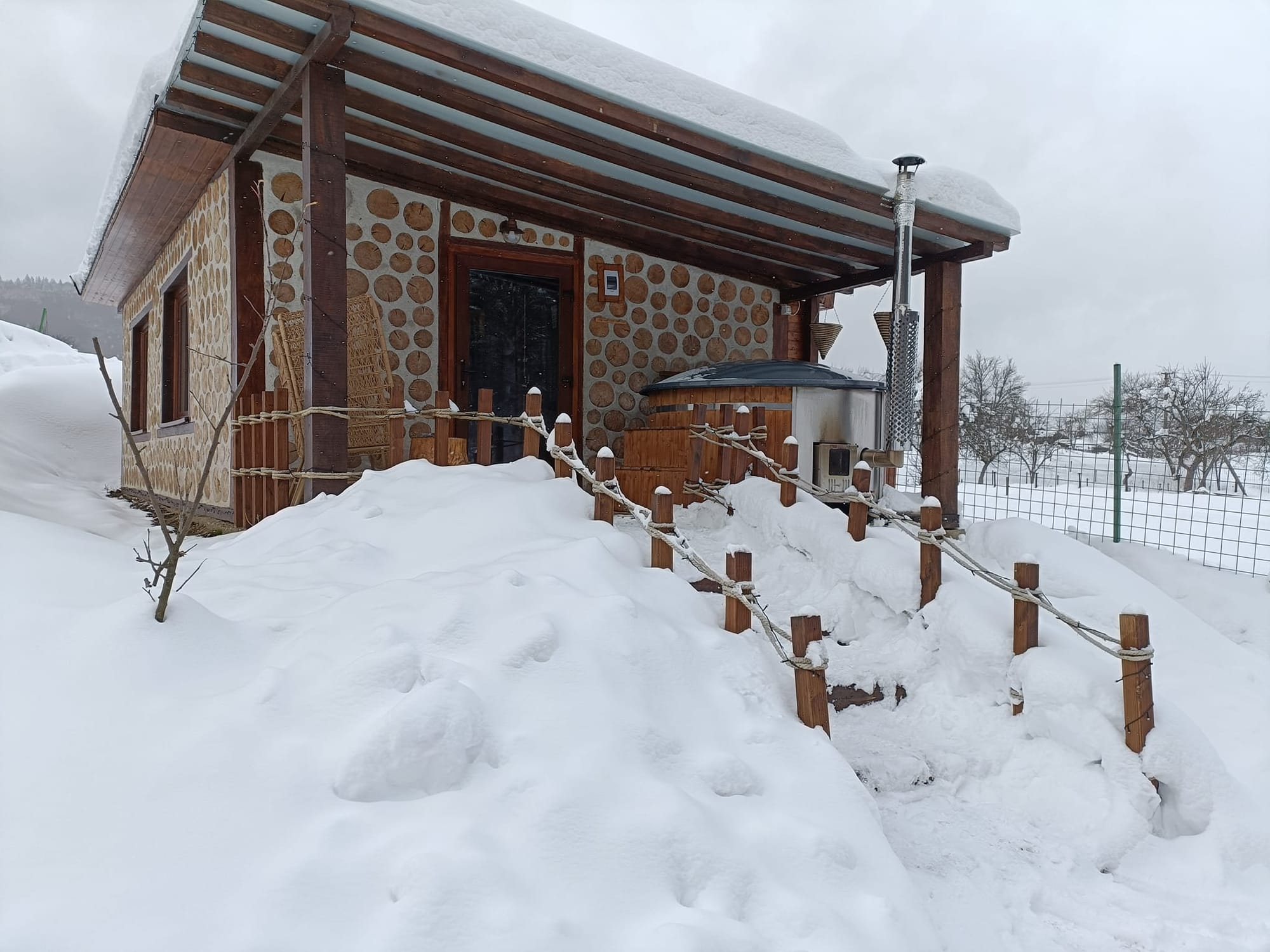 Dacă mergeți în cuplu vă recomand Velvet&Vanilla House. Sunt două căsuțe cochete și intime, fiecare cu capacitate de câte două persoane, cu vedere la o livadă de meri. Interesant la ele este că au fost construite din bucăți de bușteni prinse în tencuială și e ceva mai puțin întâlnit la noi. Au șemineu și ciubăr, iar una dintele ele dispune și de saună. Pentru ciubăr se plătește extra.